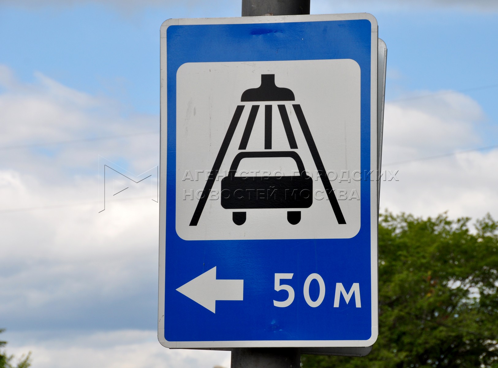 Знак пешеходного перехода у Москва-Сити.