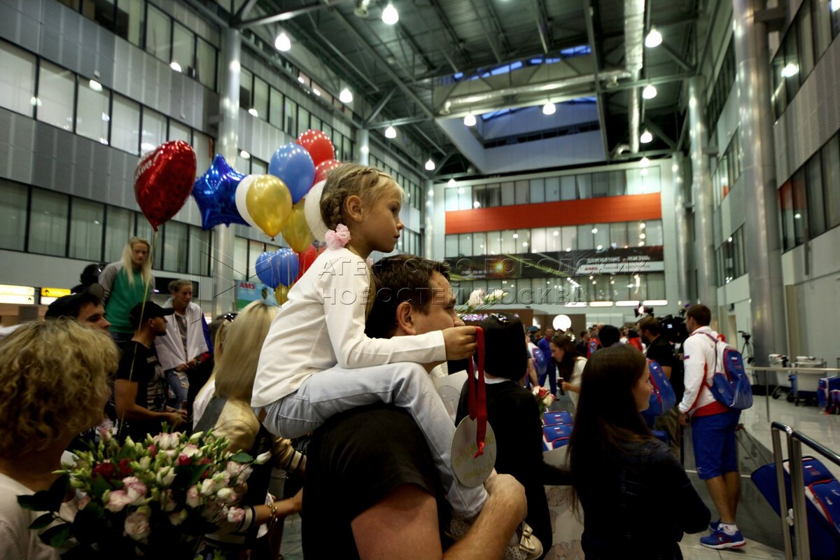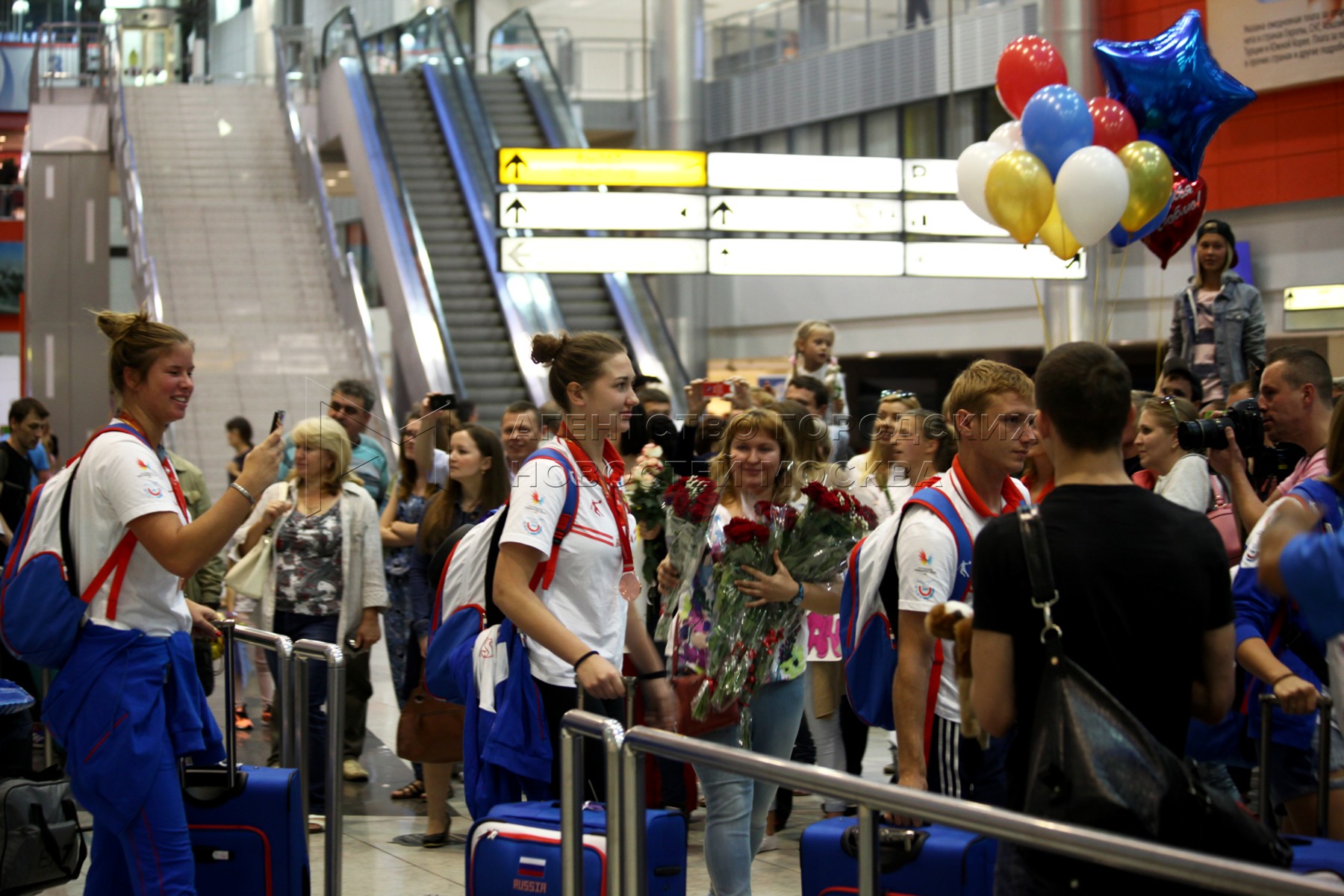 Торжественная встреча российской сборной с XXVIII Всемирной летней Универсиады-2015 в аэропорту Шереметьево