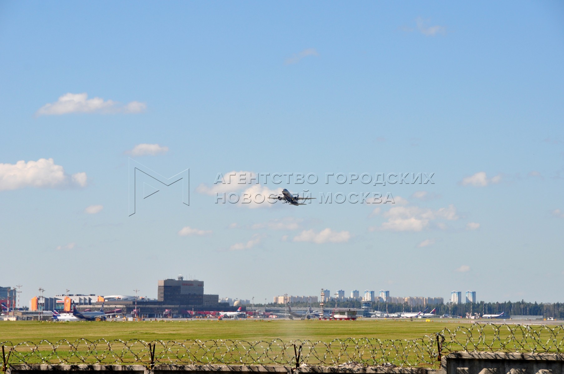 Взлет и посадка самолетов у Международного аэропорта Шереметьево.