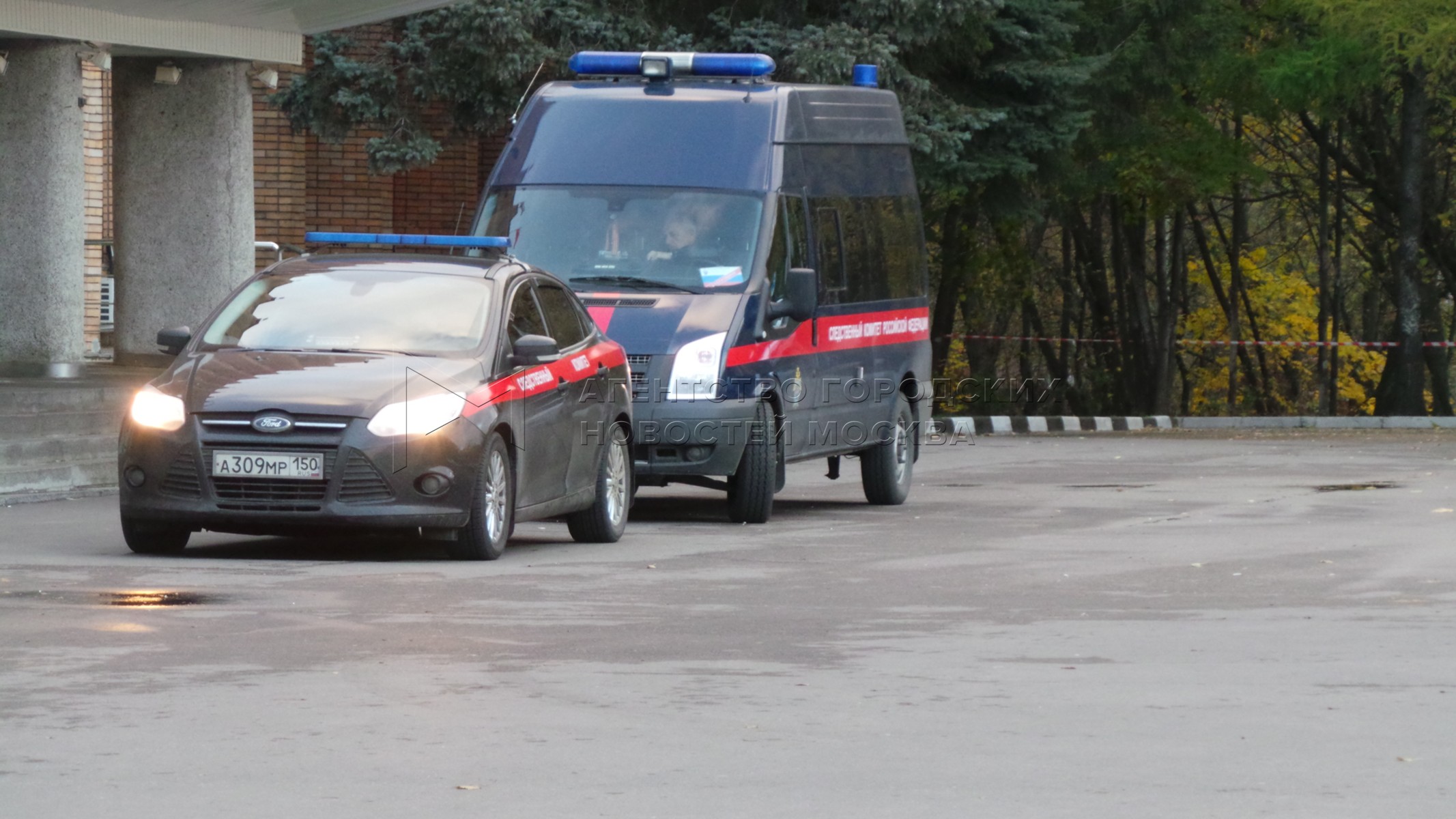 • Описание: Сотрудники Следственного комитета возле здания администрации Красногорска