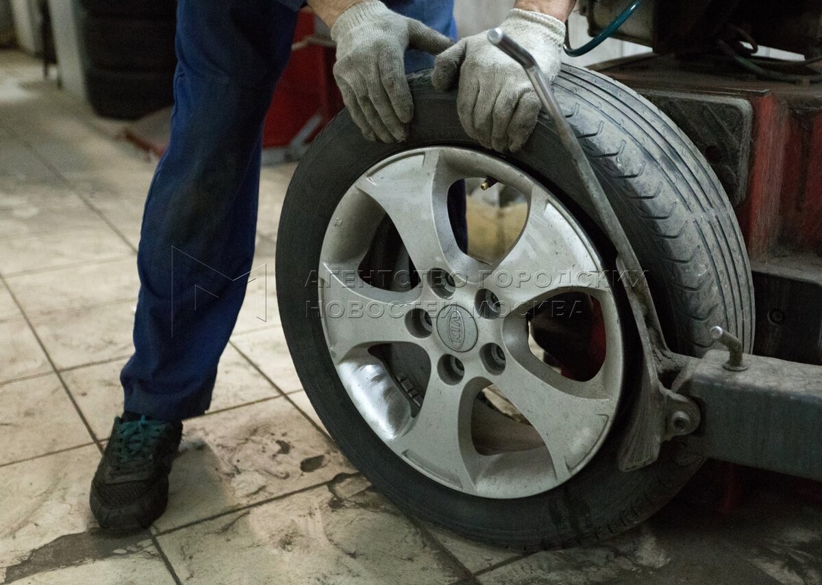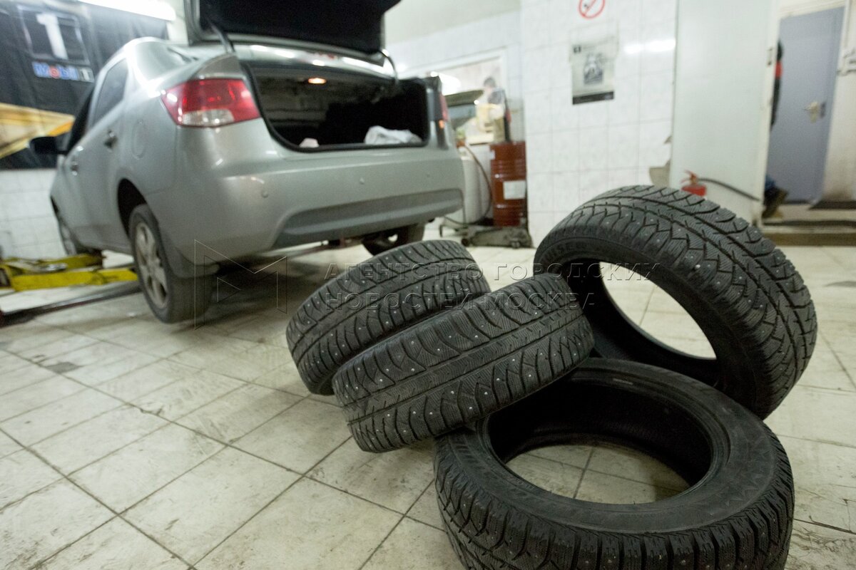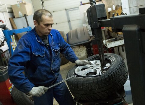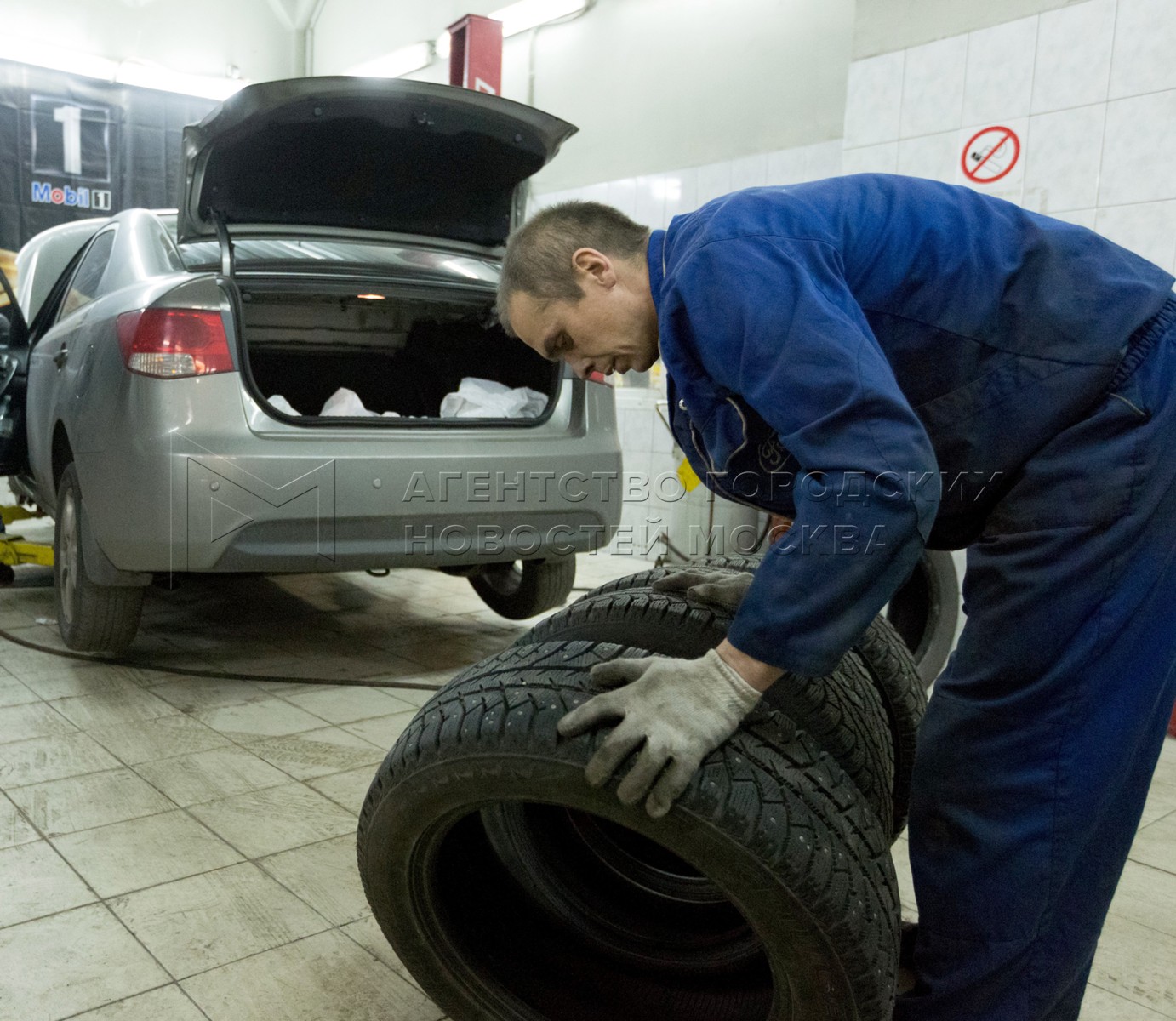 Сезонная смена летней резины на зимнюю в шиномонтажной мастерской. Автор: Зыков К...