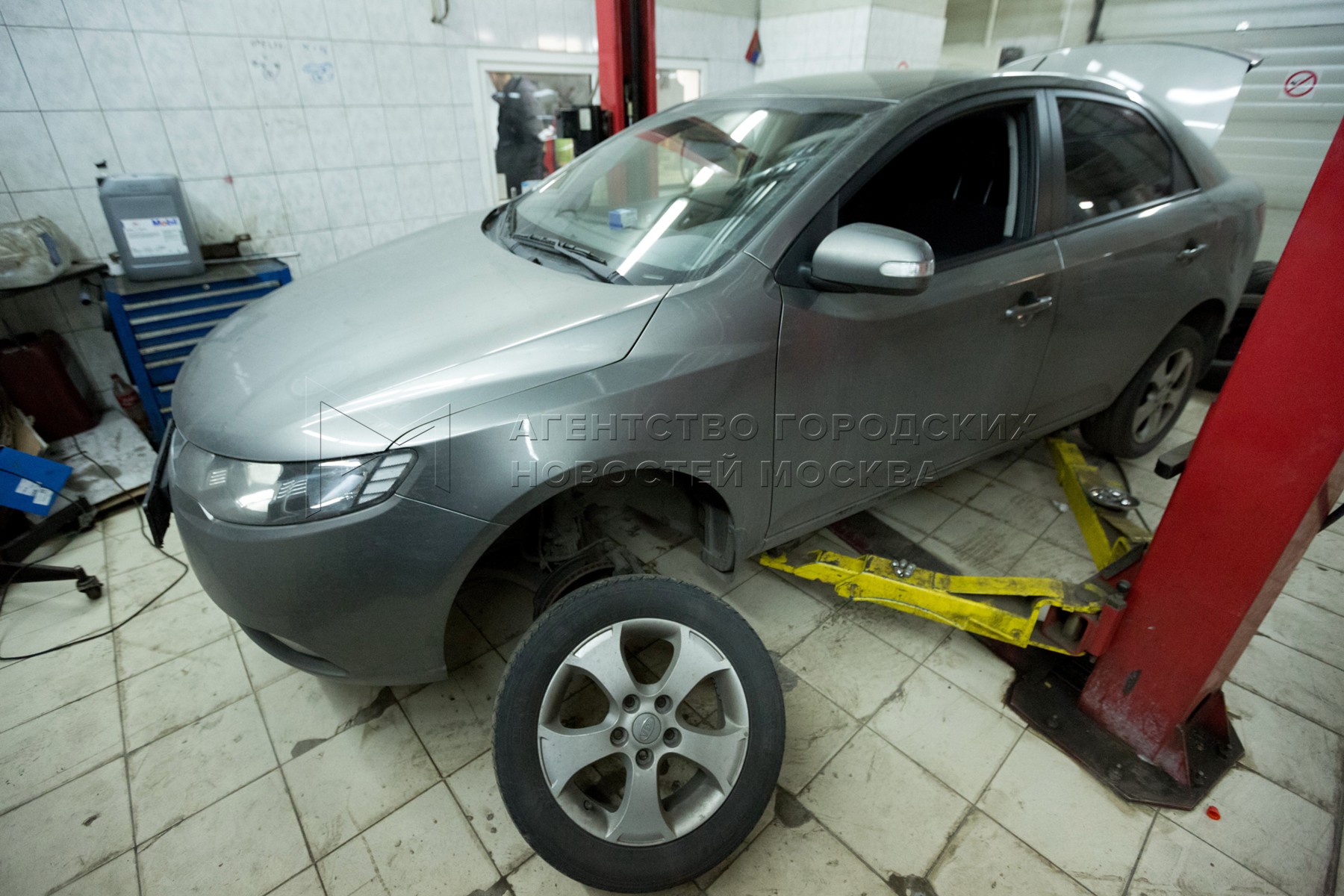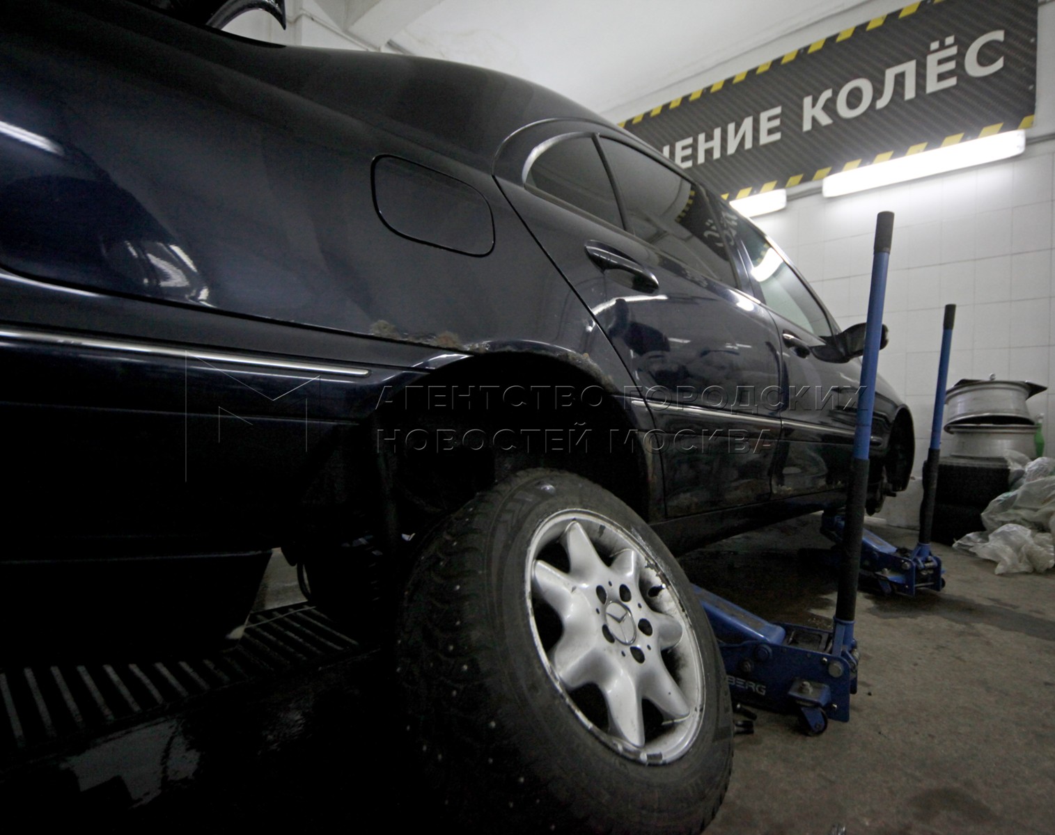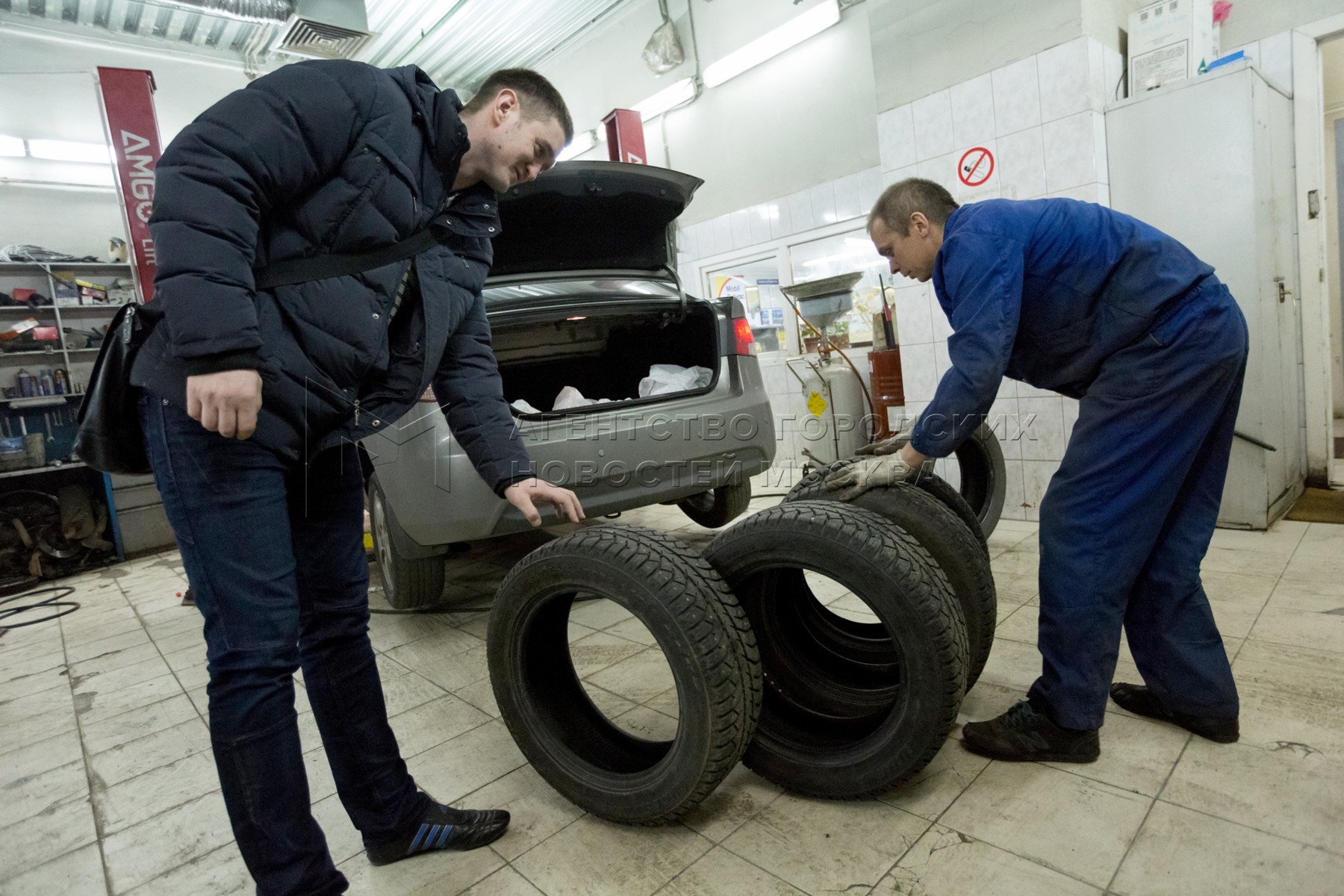 Сезонная смена летней резины на зимнюю в шиномонтажной мастерской. Автор: Зыков К...