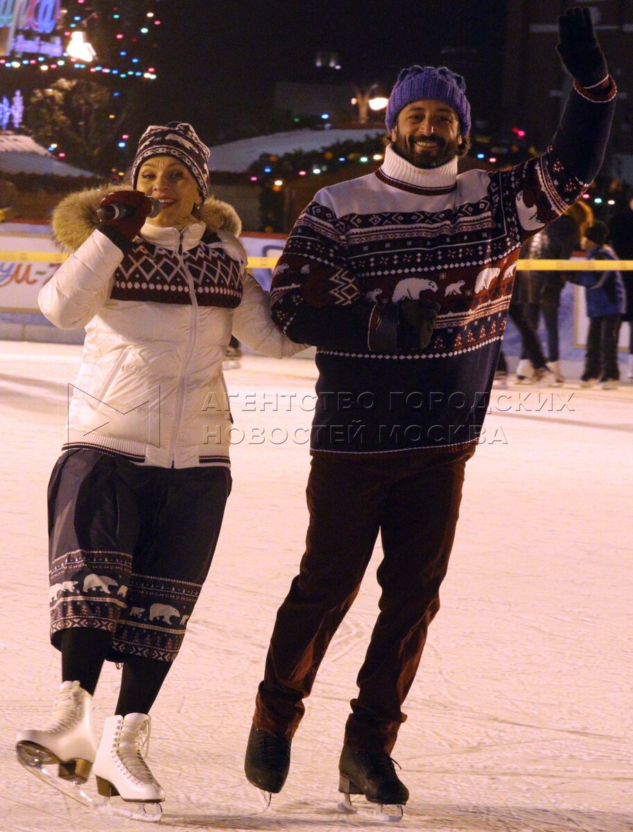 Актриса Елена Захарова и фигурист Валерий Синицин на открытии ГУМ-катка на Красн...