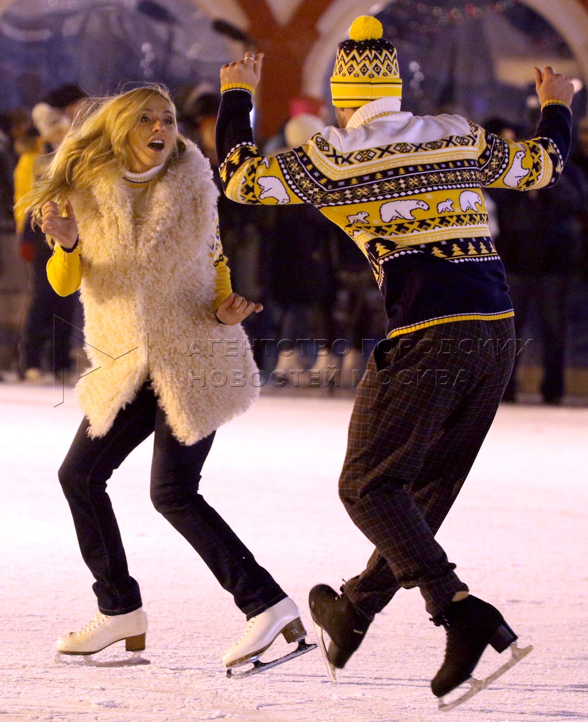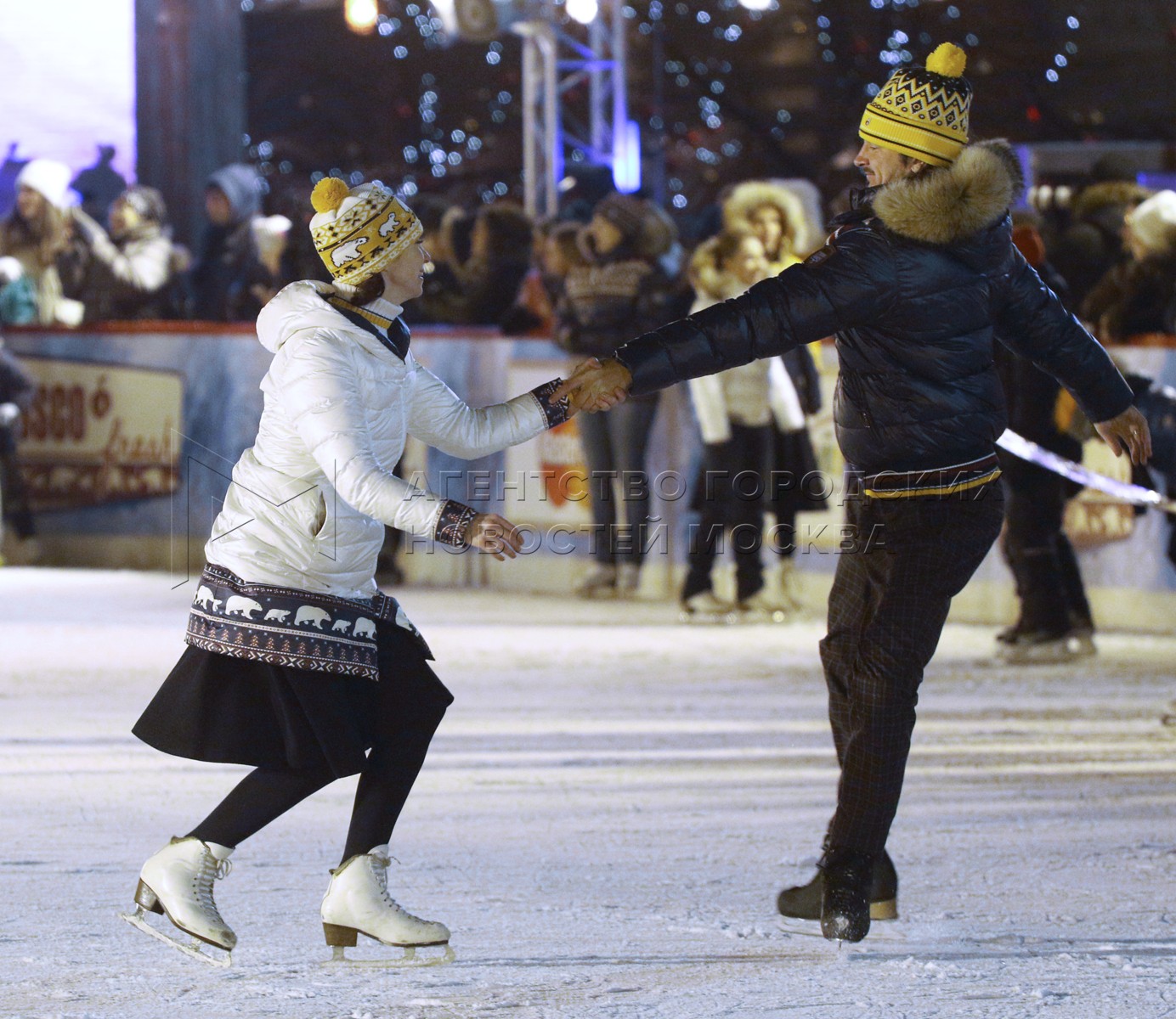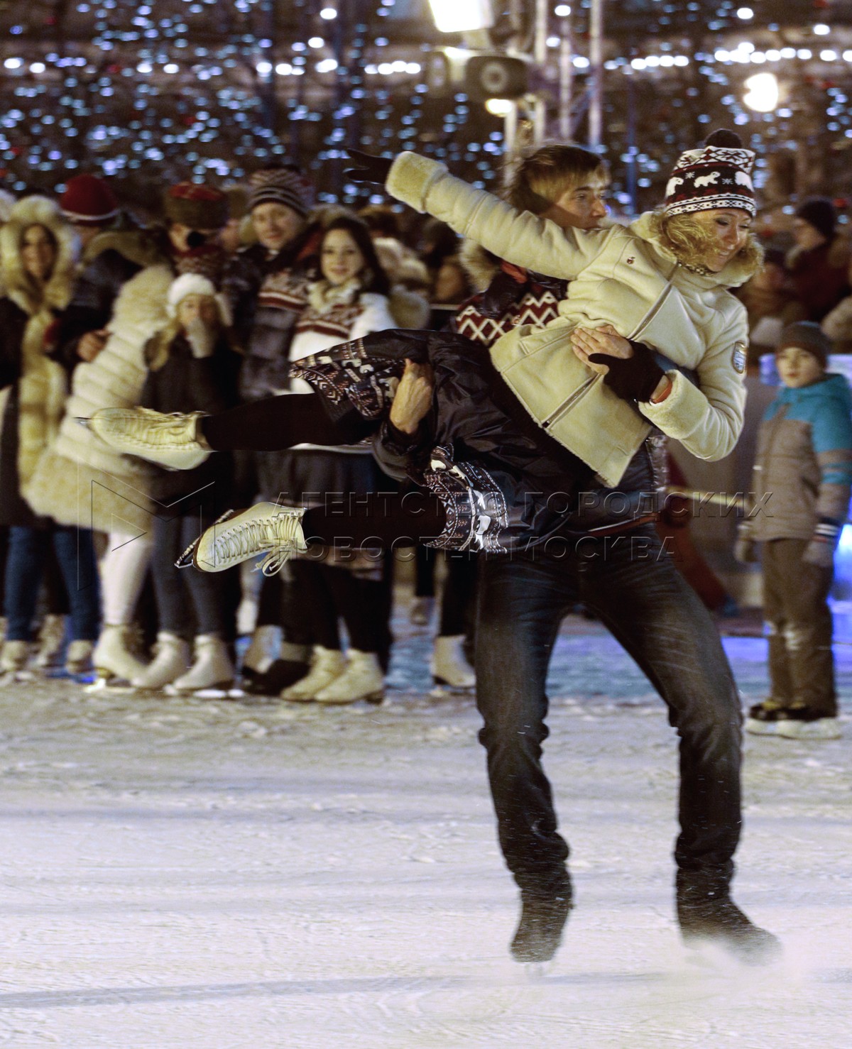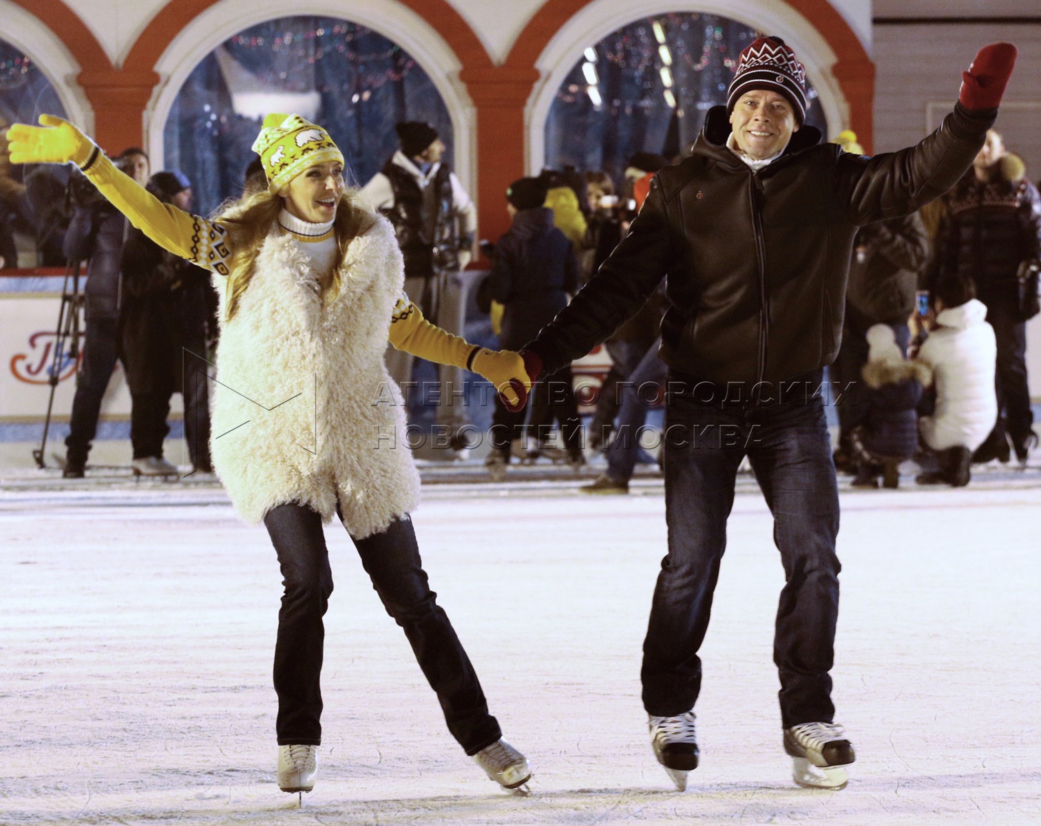 • Описание: Фигуристы Татьяна Навка и Роман Костомаров на открытии ГУМ-катка на Красной площади