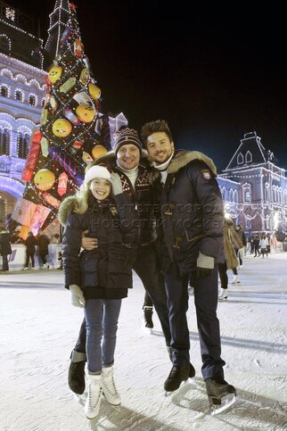 Фигурист Илья Авербух (справа) на открытии ГУМ-катка на Красной площади