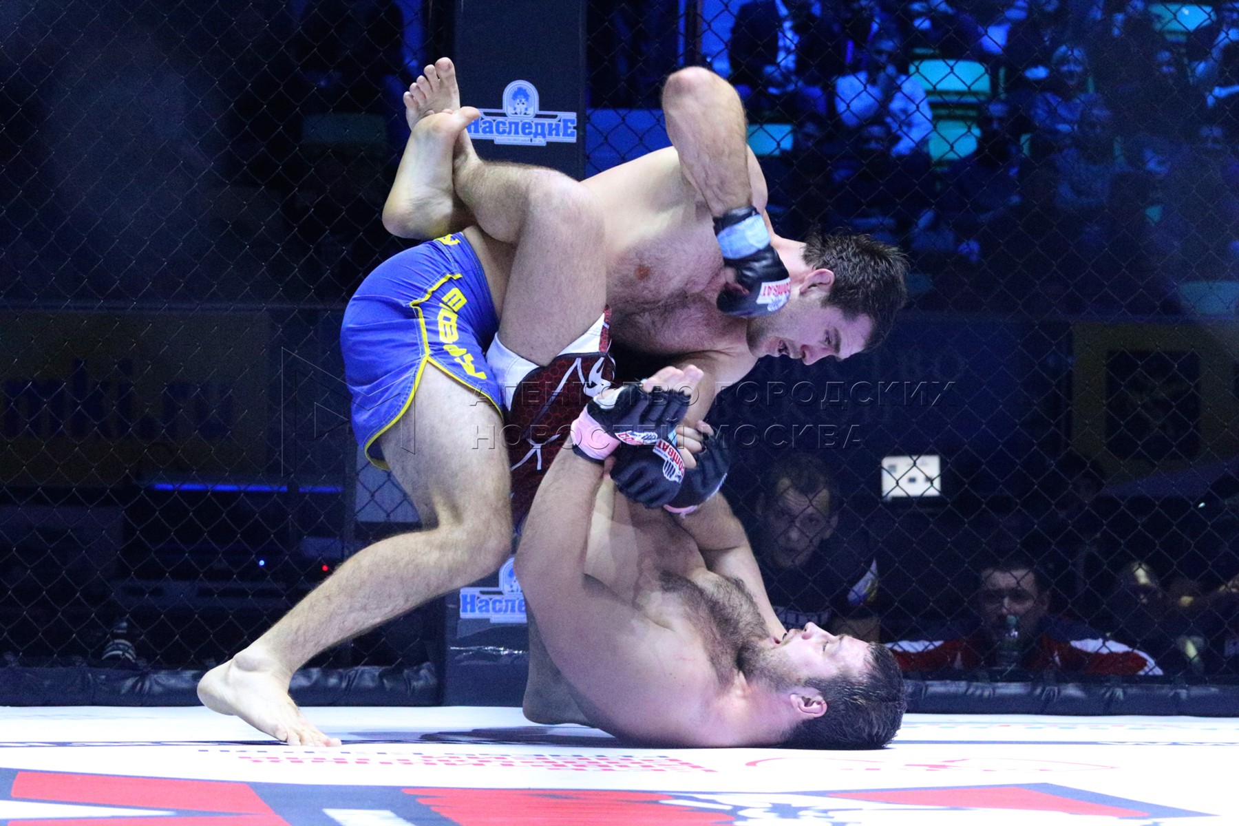 Российский боец смешанных единоборств Василий Бабич (сверху) и Максим Футин (сни...
