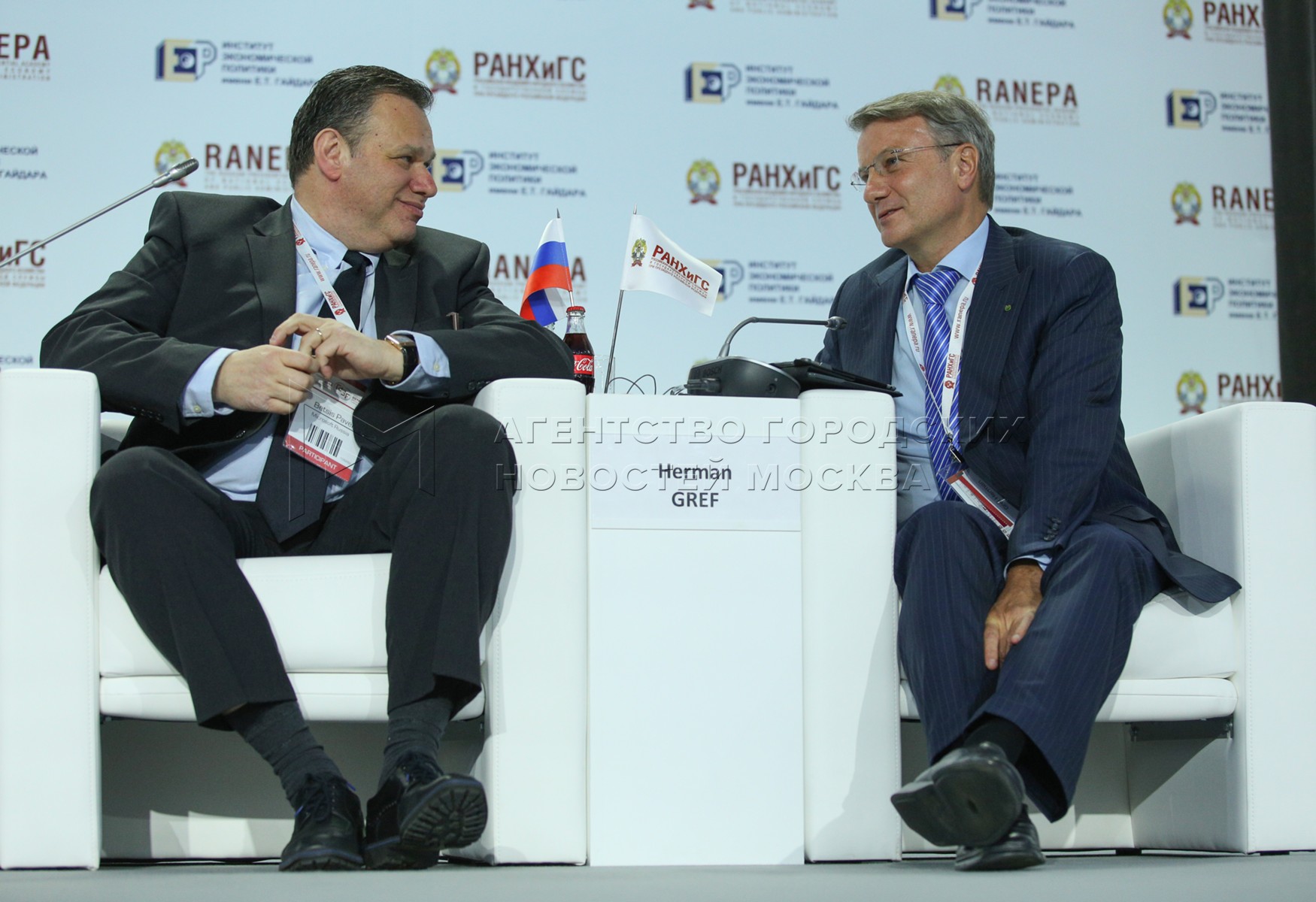 Президент ООО «Майкрософт Рус» Павел Бетсис (слева), президент, председатель Правления Сбербанка Герман Греф (справа)