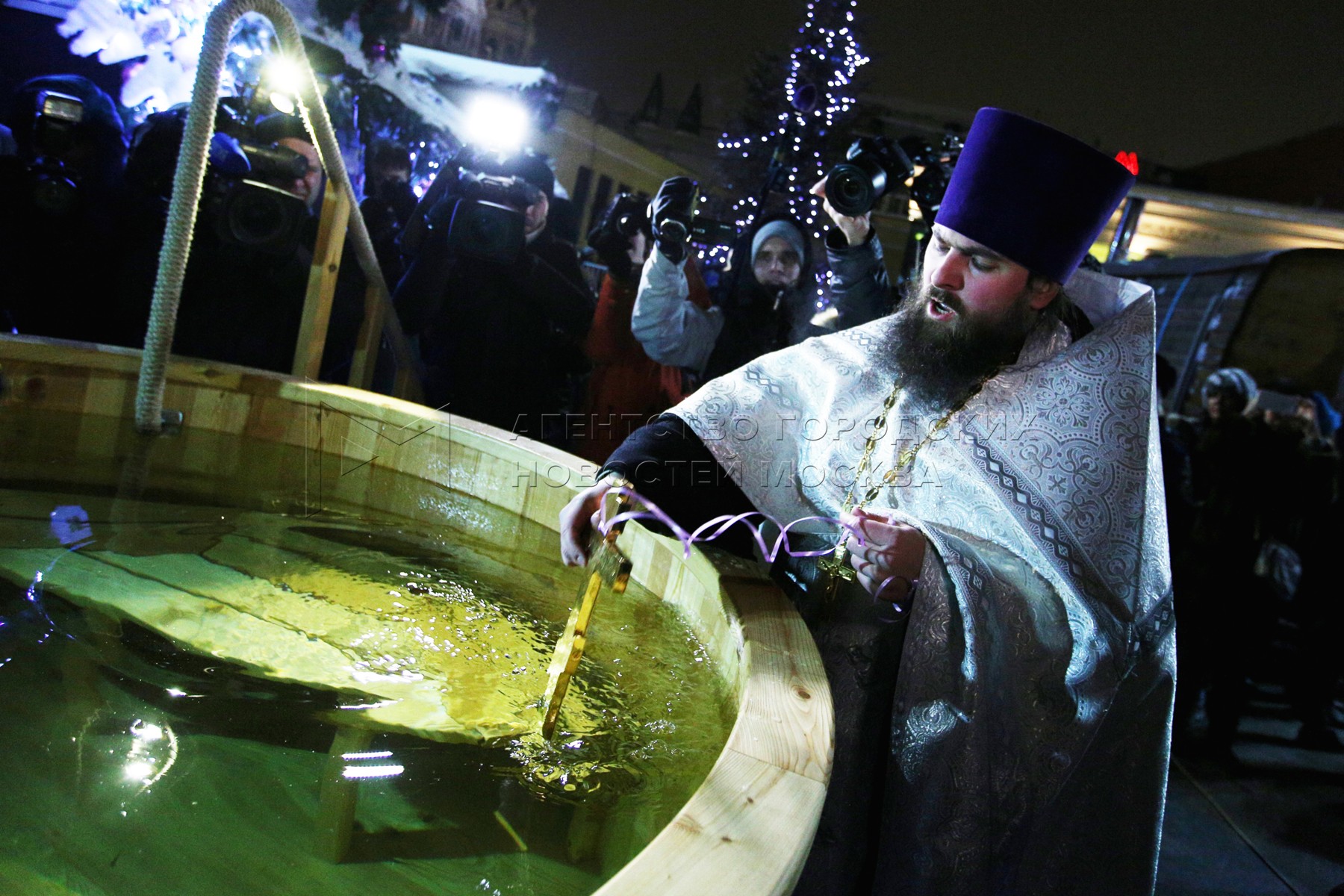 • Описание: Освящение воды во время традиционного крещенского купания на площади Революции