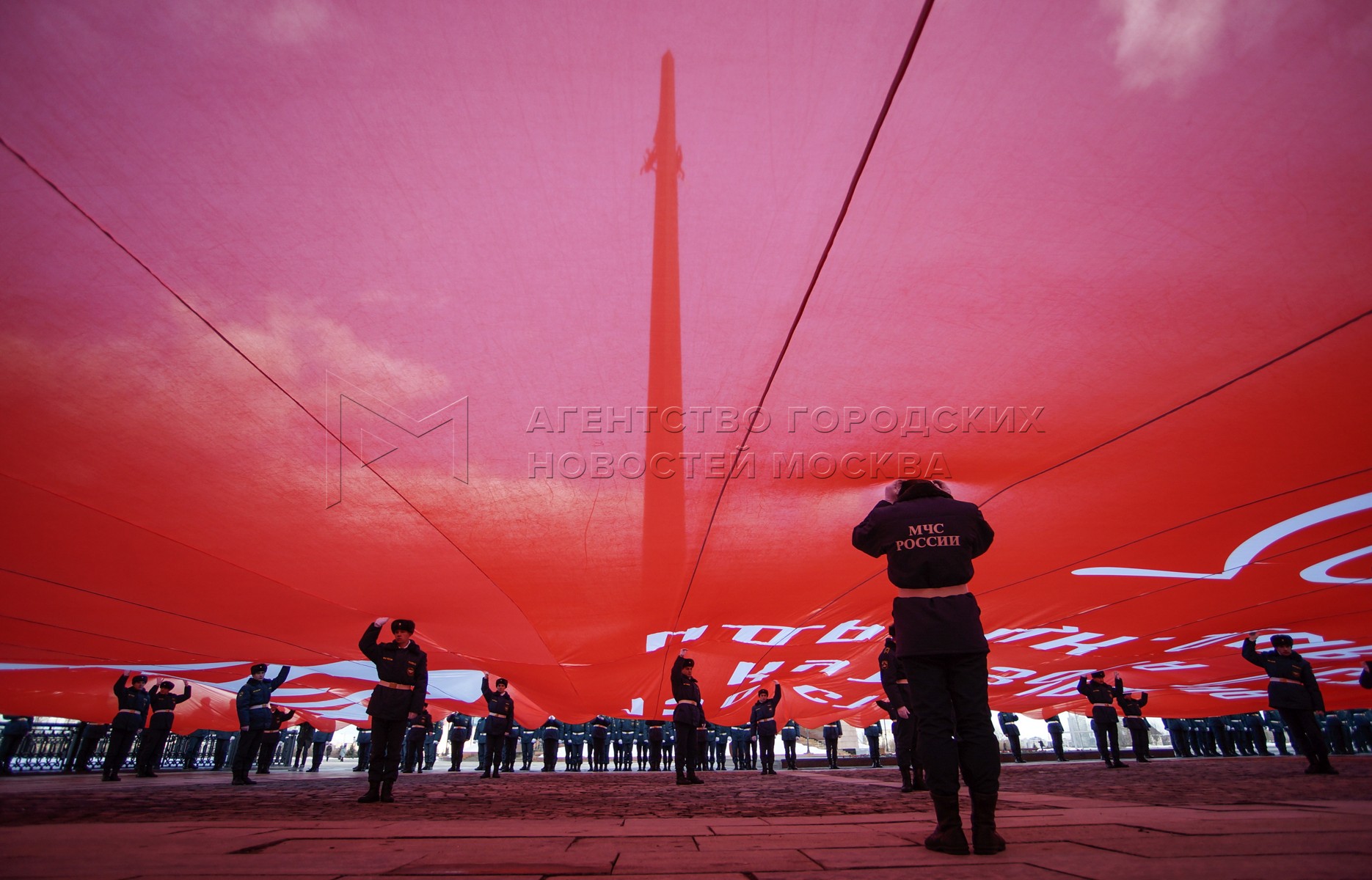 • Описание: Автор: Ермаков Дмитрий. Церемония демонстрации копии Знамени Победы размером более 1 тыс. кв. м