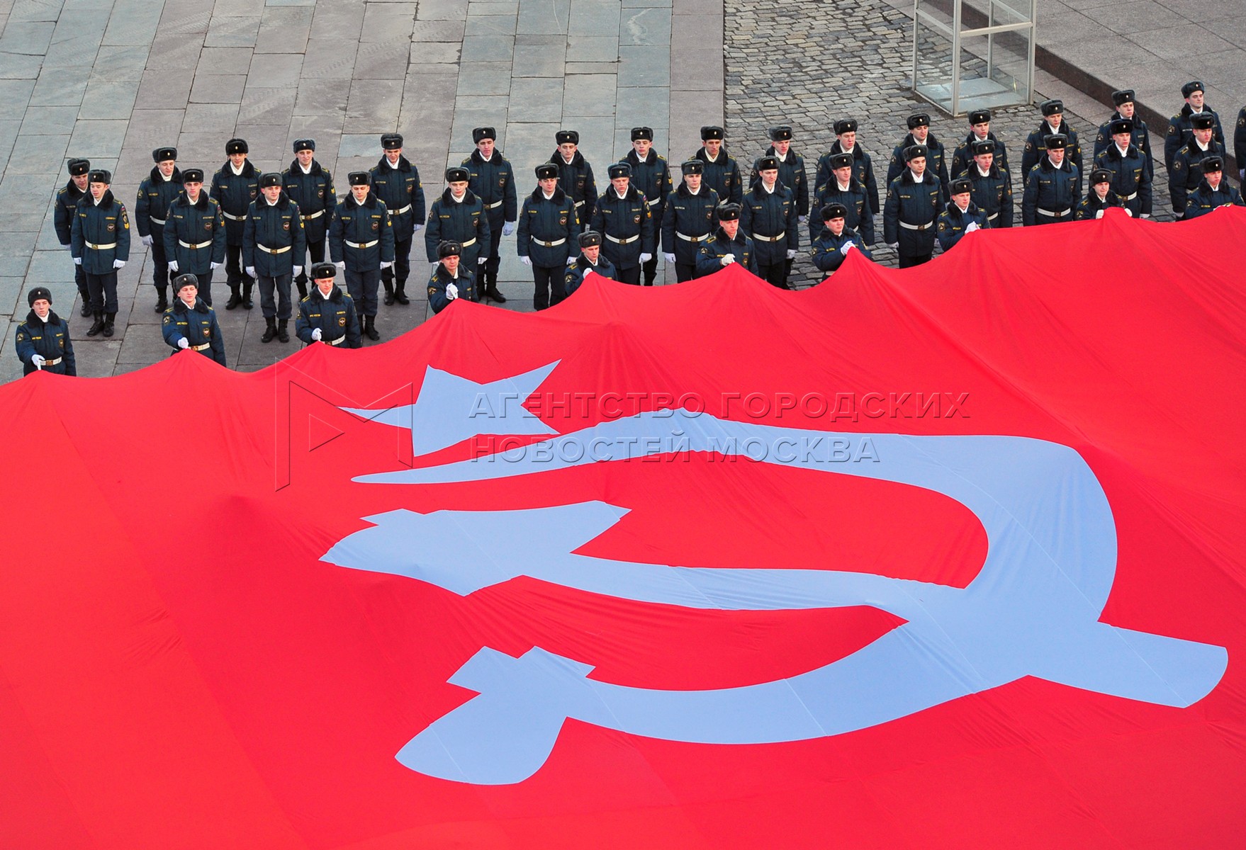 • Заголовок: Церемония демонстрации копии Знамени Победы размером более 1 тыс. кв. м