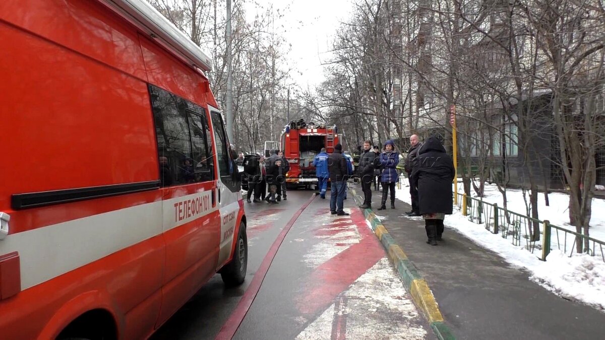 Пожарно-спасательные подразделения около подъезда на ул. Народного Ополчения, где...