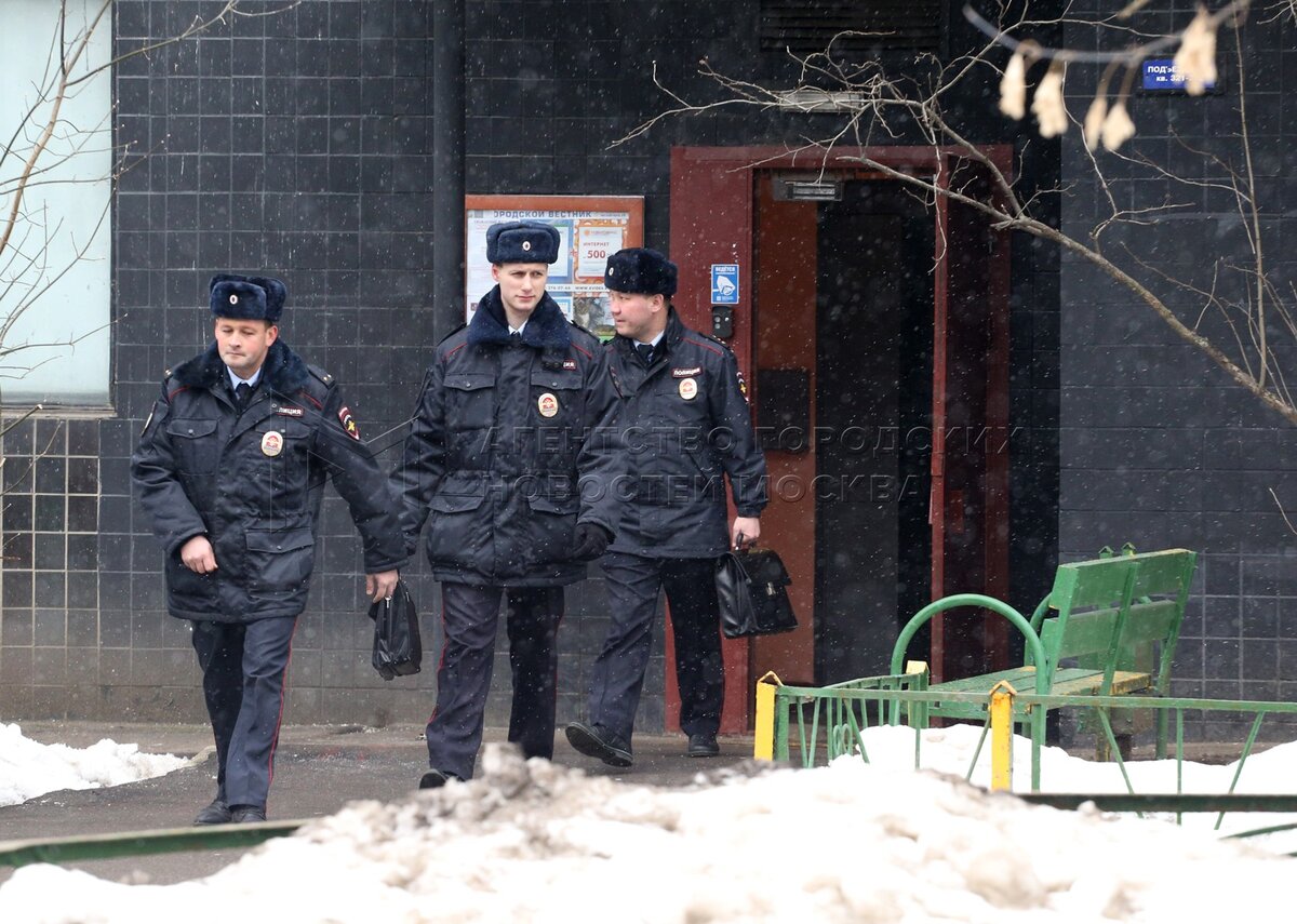 Автор: Никеричев Андрей. Сотрудники полиции выходят из подъезда на ул. Народного ...