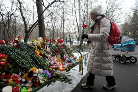 • Заголовок: Цветы и игрушки в память об убитой девочке у дома на ул. Народного Ополчения
