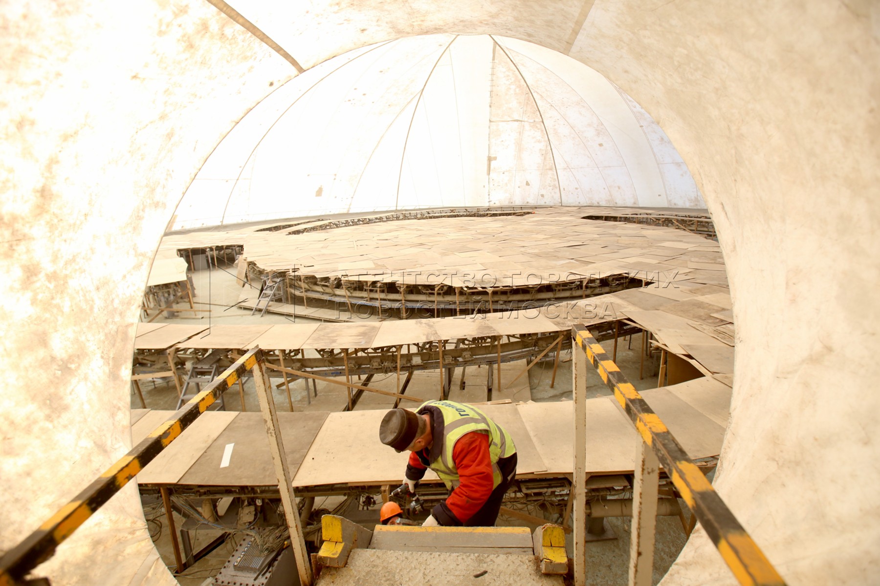 Проведение работ по демонтажу купола, установленного над центральным фонтаном в парке Царицыно