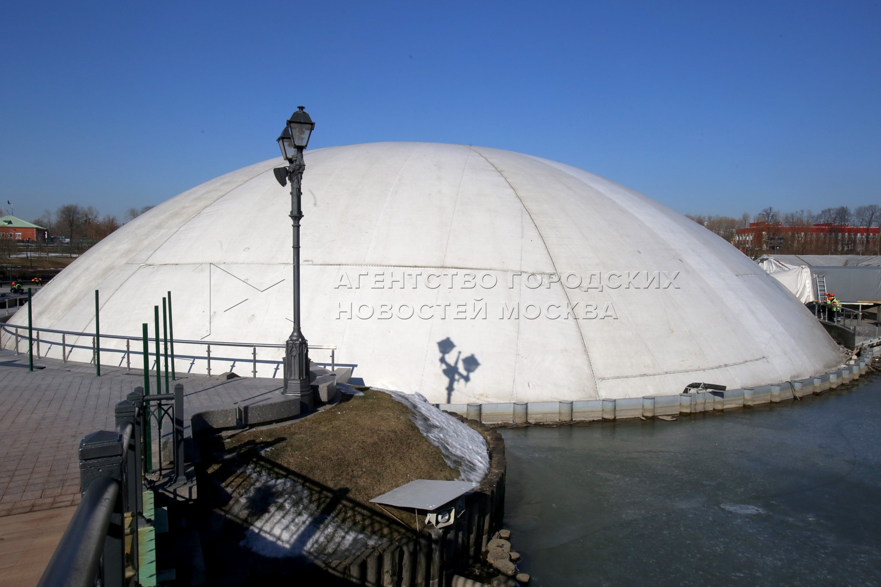 Проведение работ по демонтажу купола, установленного над центральным фонтаном в парке Царицыно