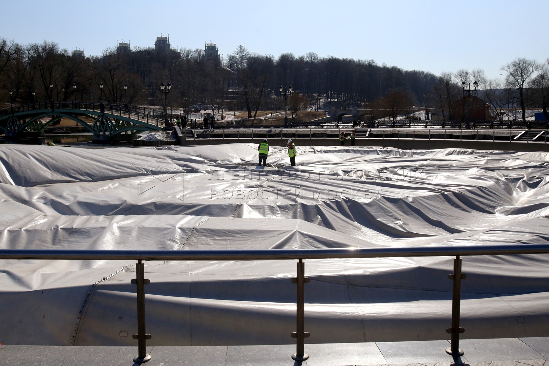 Проведение работ по демонтажу купола, установленного над центральным фонтаном в парке Царицыно