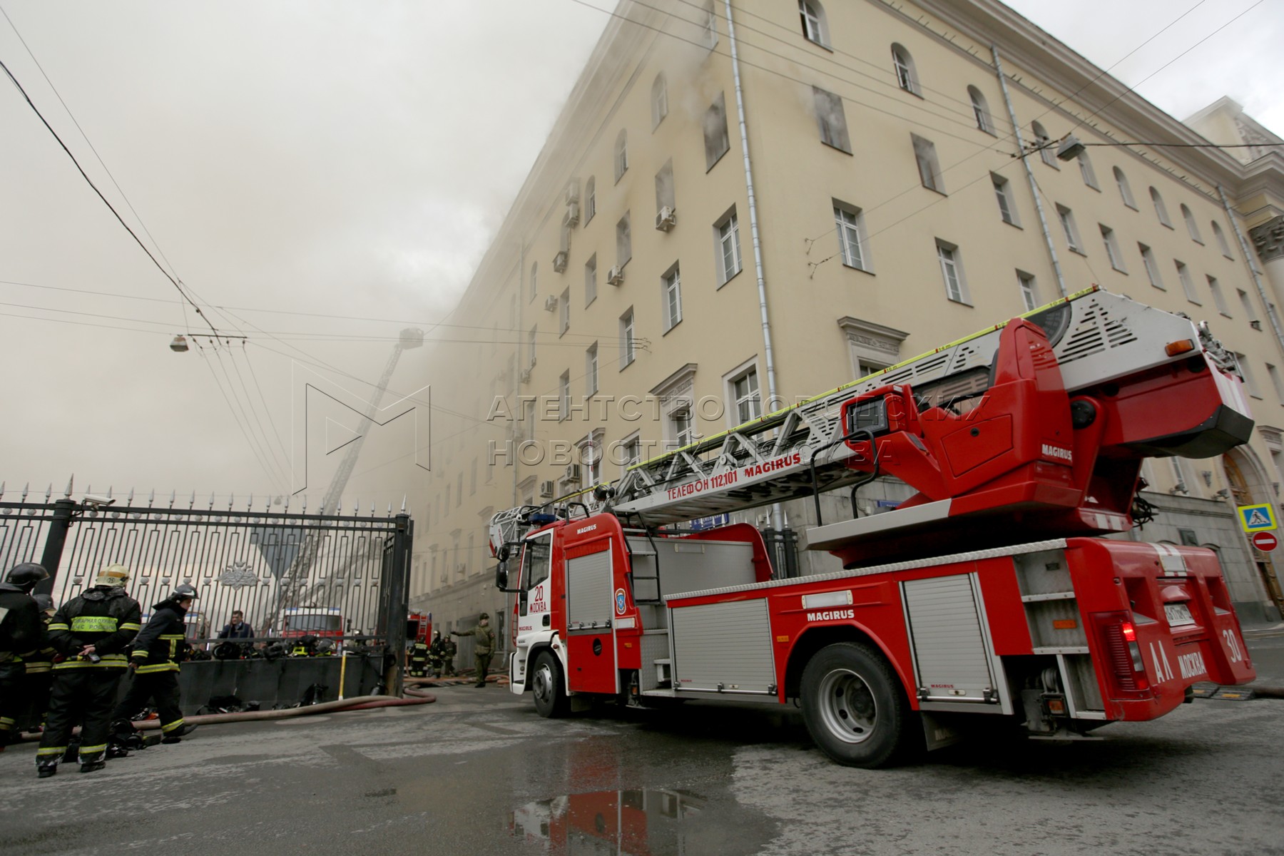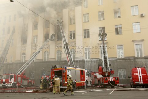 • Заголовок: Ликвидация пожара в здании Министерства обороны