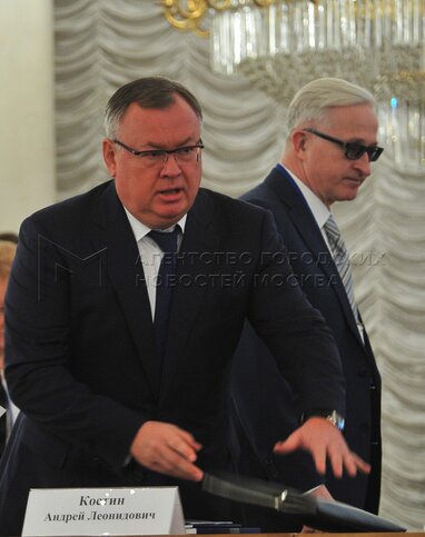 Председатель правления банка ВТБ Андрей Костин (слева), президент Российского сою...