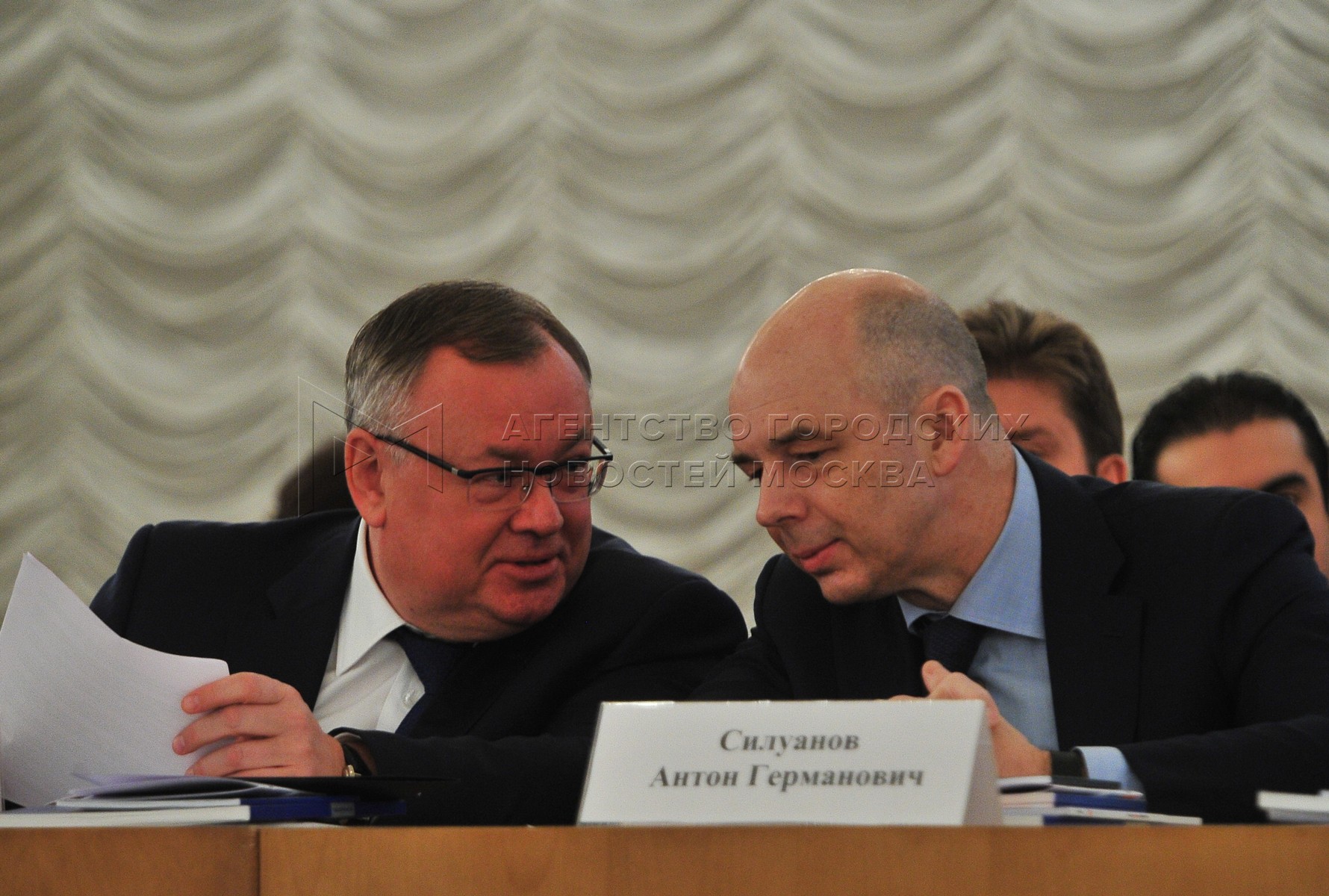 Председатель правления банка ВТБ Андрей Костин, министр финансов РФ Антон Силуано...