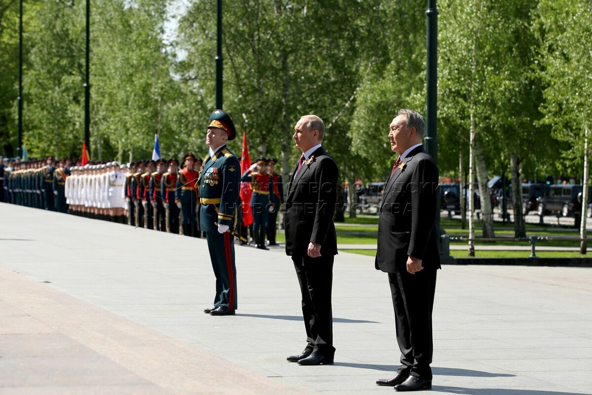 Президент Российской Федерации Владимир Путин (слева) и президент Казахстана Нурс...