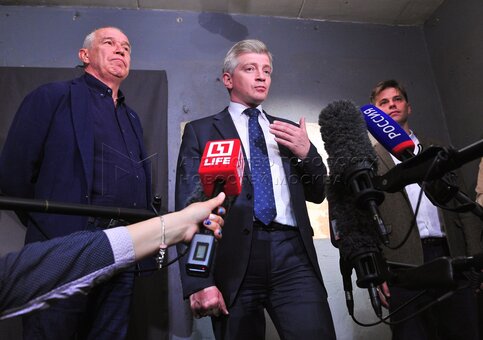 Актер Сергей Гармаш (справа), руководитель департамента культуры Москвы Алексан...