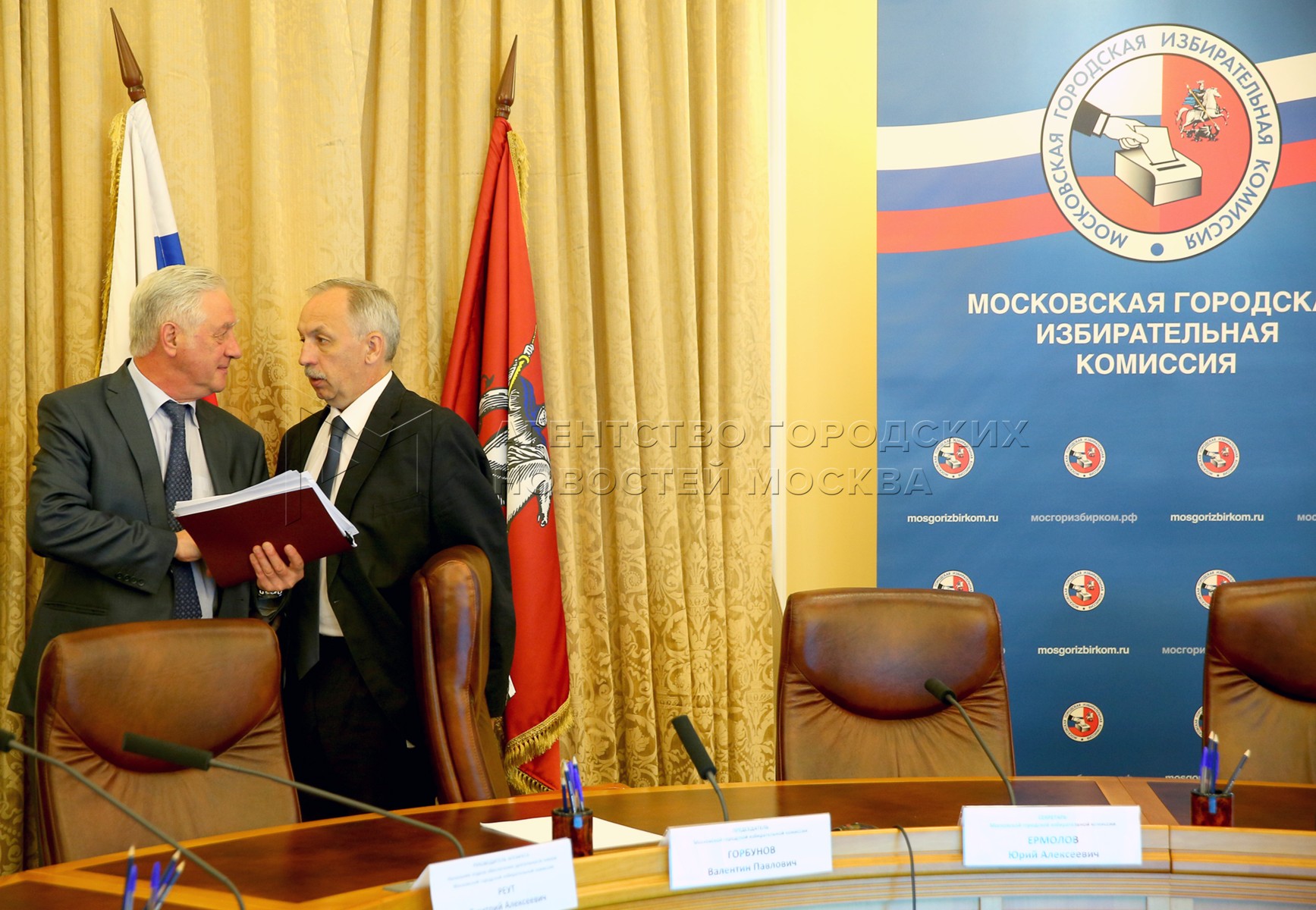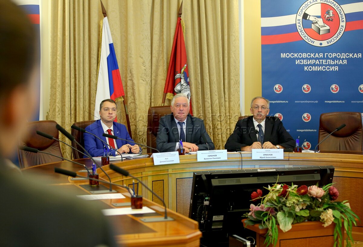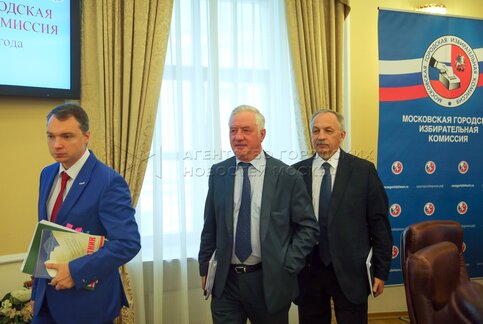 Председатель Мосгоризбиркома Валентин Горбунов, секретарь Мосгоризбиркома Юрий Ер...