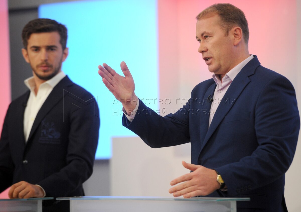 Кандидат в депутаты Госдумы VII созыва Игорь Николаев (Яблоко) на предвыборных теледебатах кандидатов в депутаты Госдумы VII созыва на канале «Москва 24» 30 августа