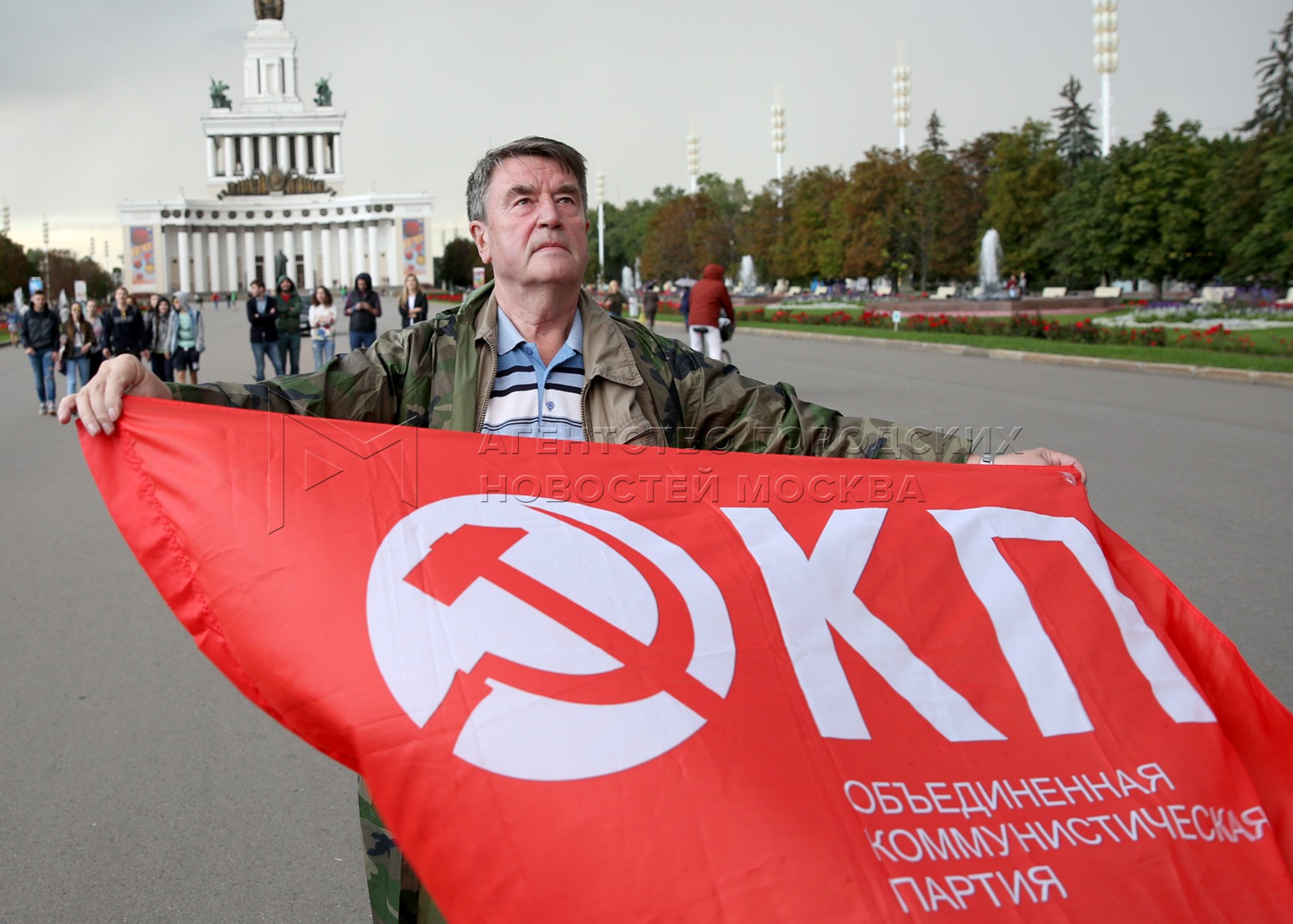 • Описание: Акция кандидата в депутаты Госдумы В.Лакеева у центрального входа на ВДНХ