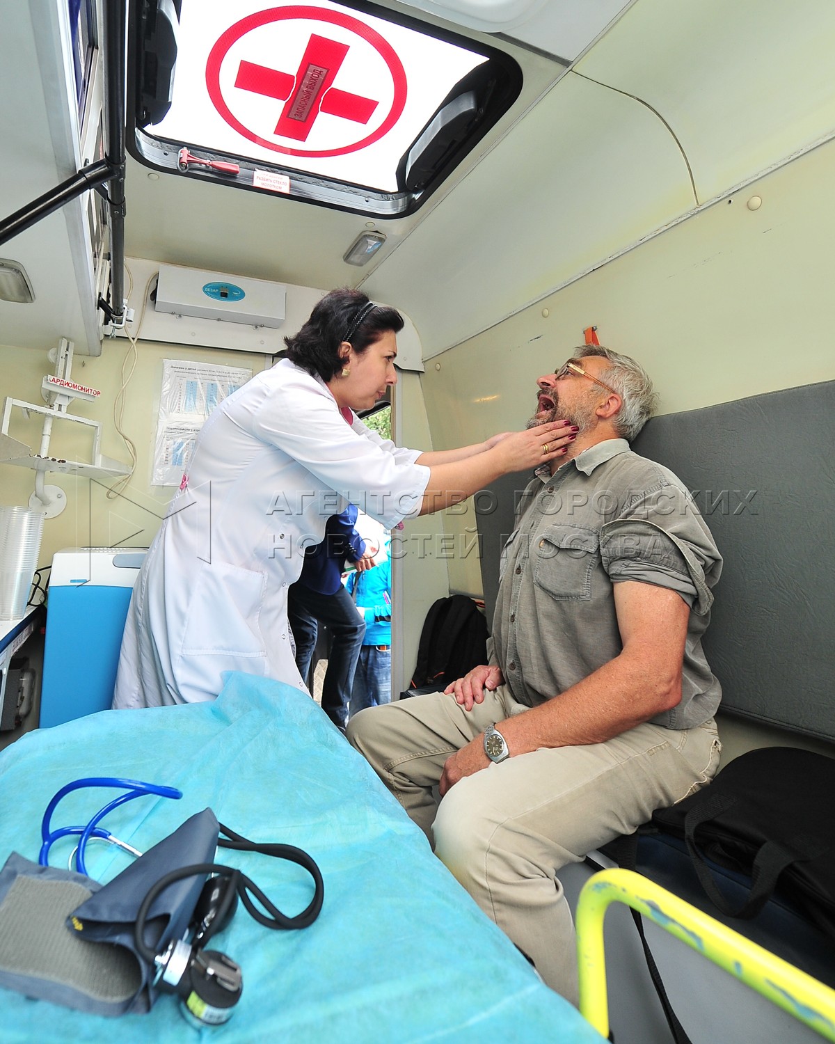 • Описание: Мобильный медицинский пункт для вакцинации от гриппа у станции метро «Бауманская»