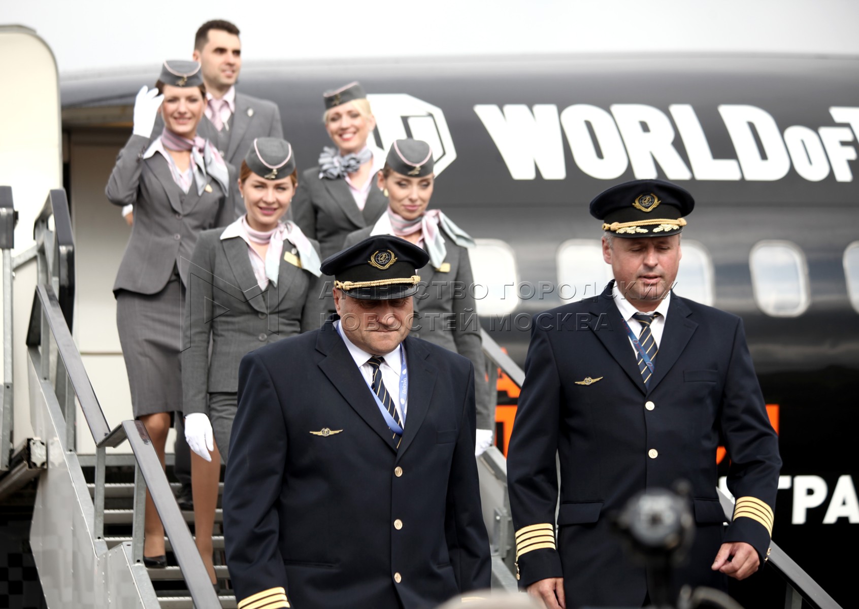 Команда экипажа самолета авиакомпании «Белавиа» во время встречи в аэропорту Жуко...