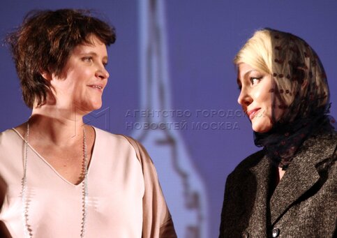 Актрисы Анастасия Пронина (слева), Надежда Маркина (справа) перед началом премье...