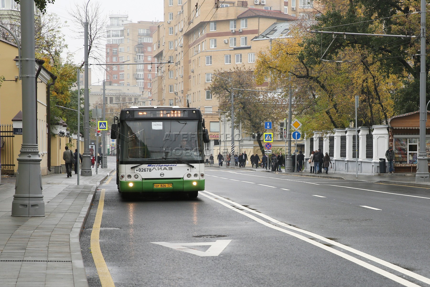 Новые выделенные полосы для общественного транспорта в центре Москвы по ул. Мохов...