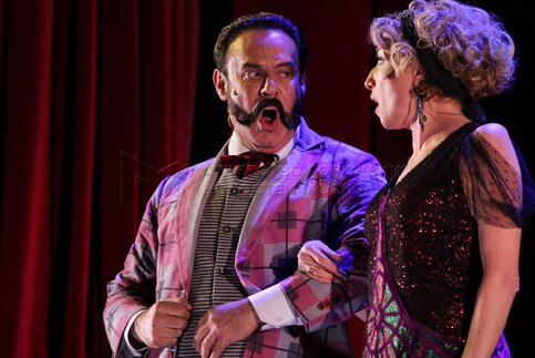 • Описание: Актеры Максим Заусалин в роли Мистера Икс и Юлия Вострилова в роли Теодоры Вердье на премьере мюзикла «Принцесса цирка» в Москве