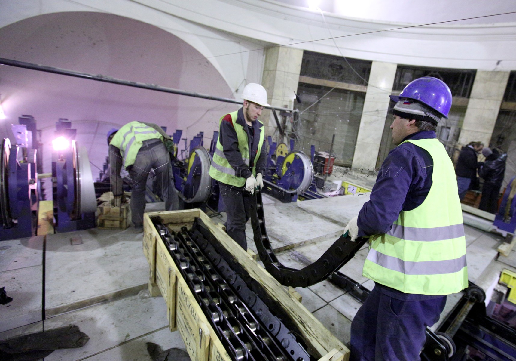 Ремонтные работы по замене эскалаторов на станции метро «Фрунзенская»