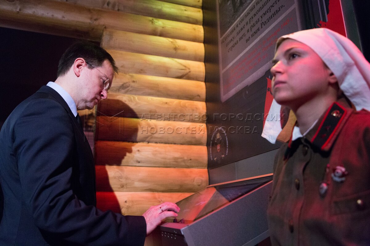 Министр культуры РФ Владимир Мединский (по центру) на открытии выставки РВИО «Вой...