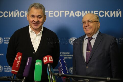 Министр обороны РФ Сергей Шойгу (по центру) на всероссийском географическом дикта...