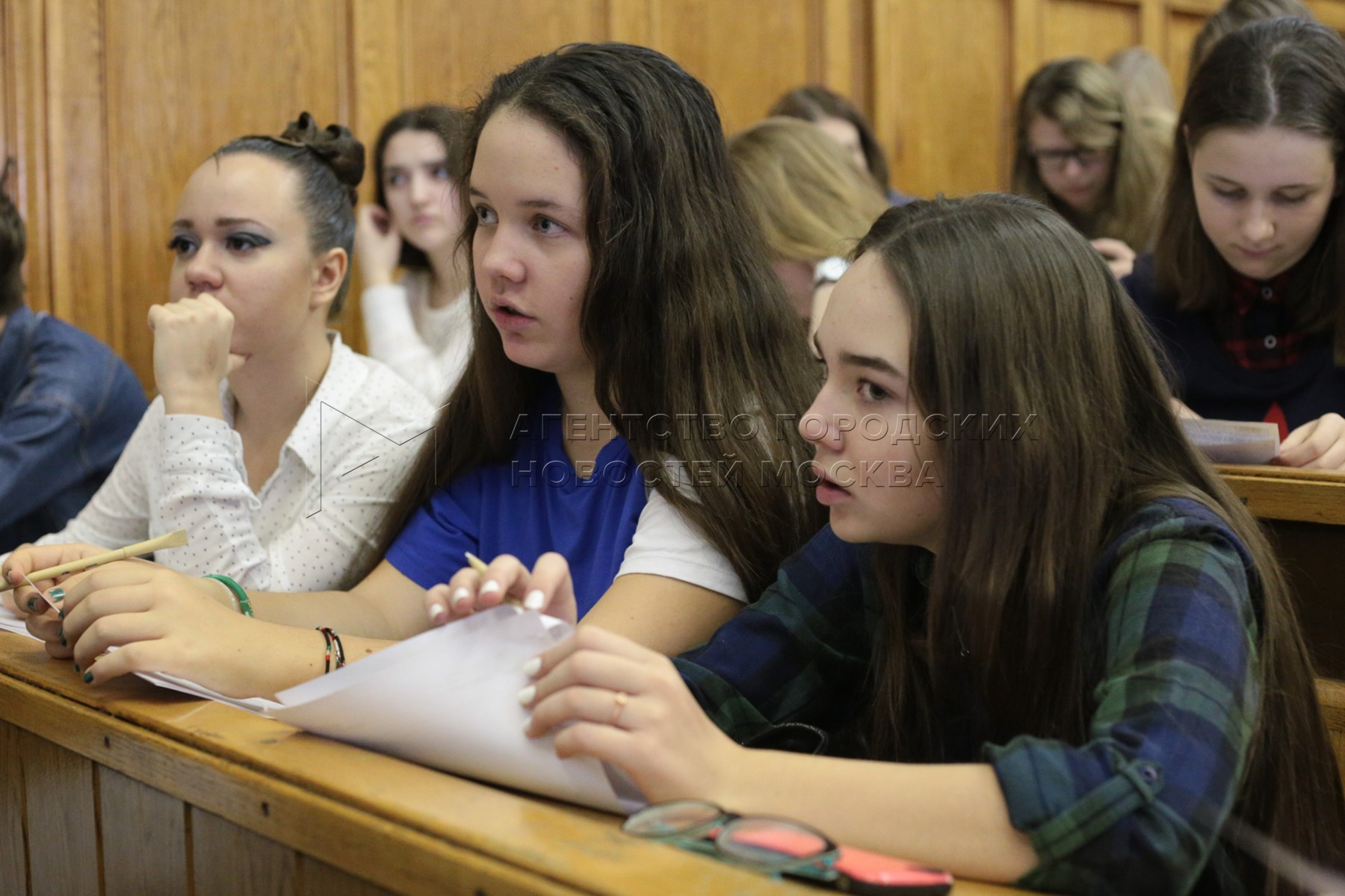 Всероссийский географический диктант в главном здании МГУ в Москве.