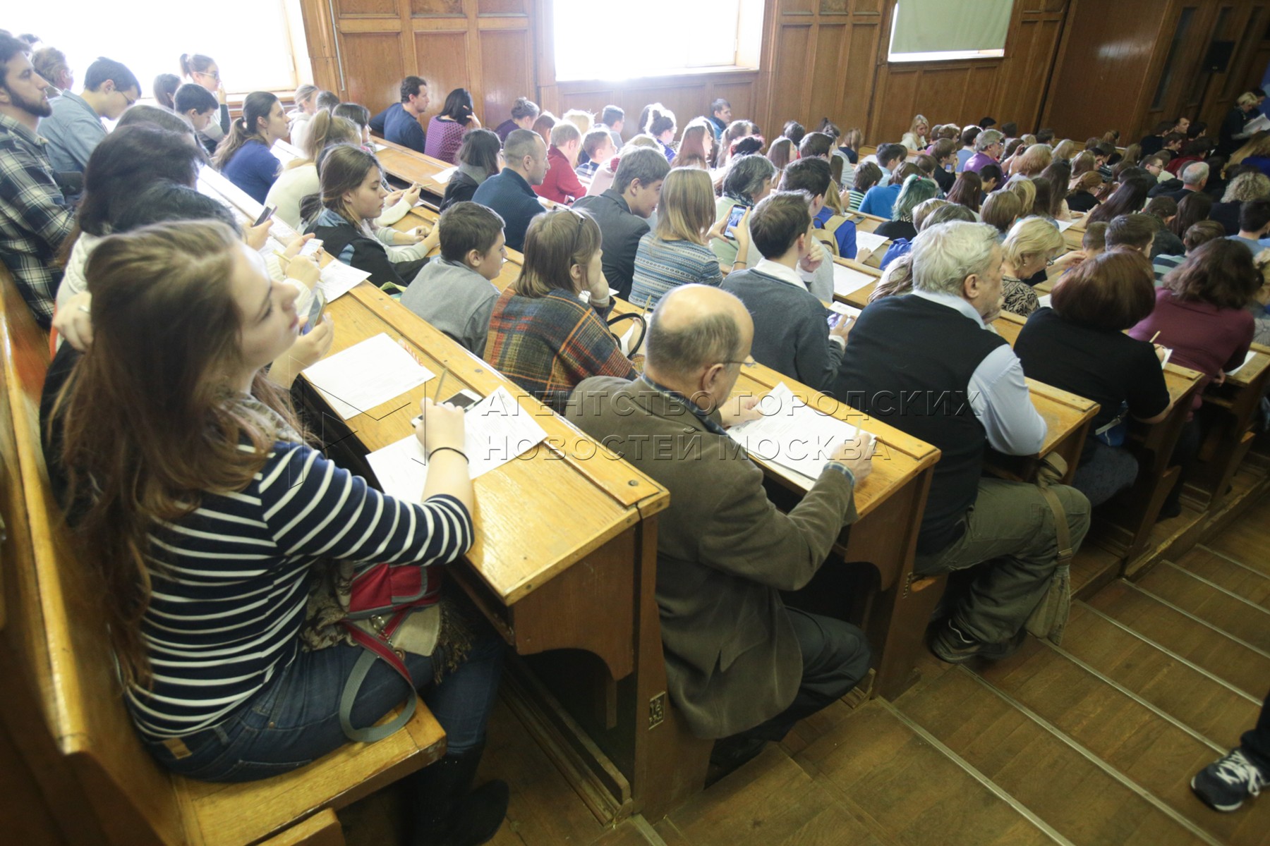 • Описание: Всероссийский географический диктант в главном здании МГУ в Москве.