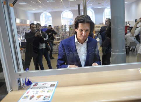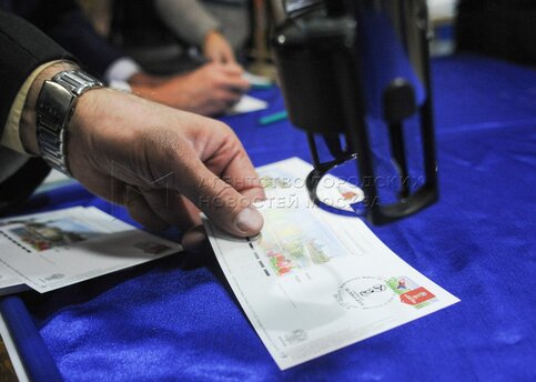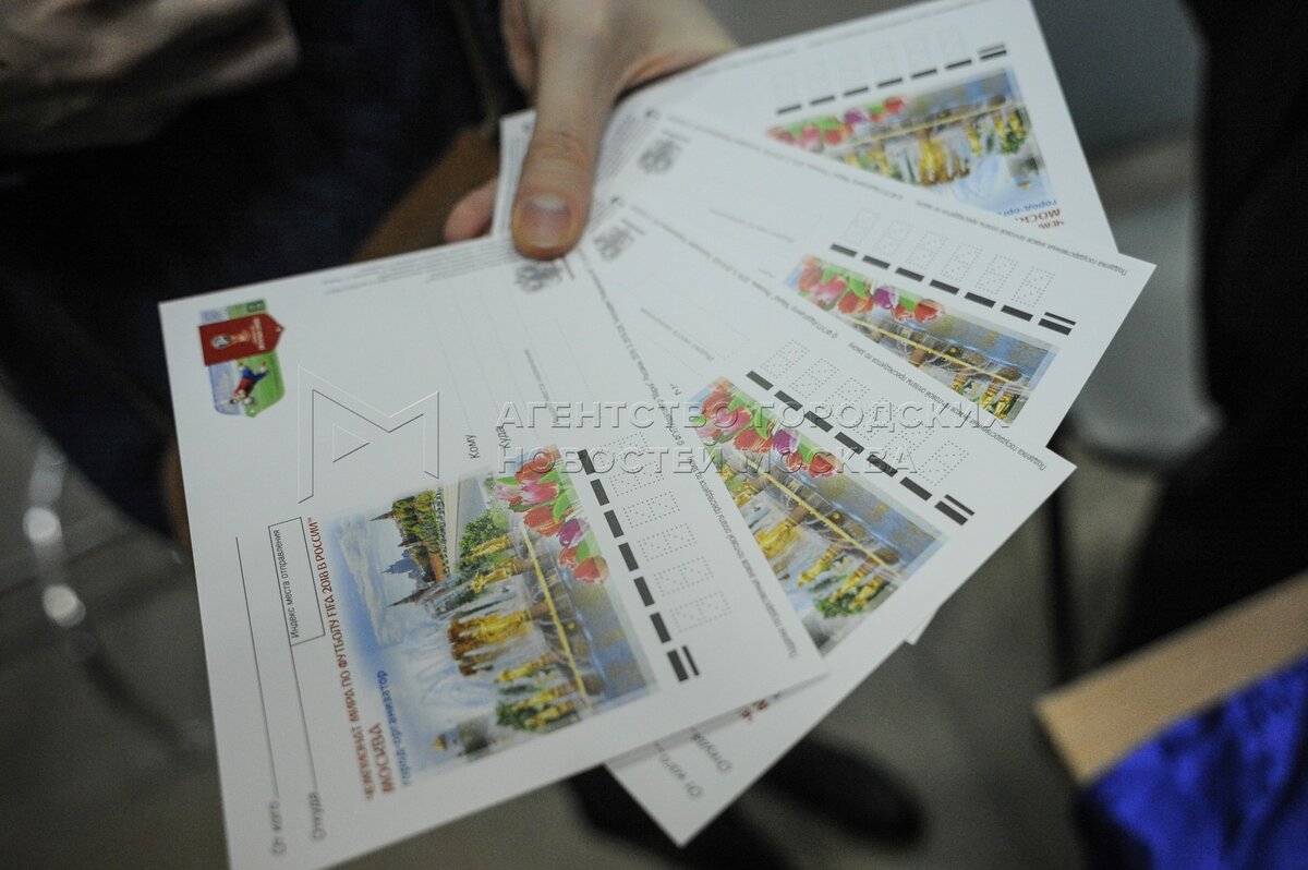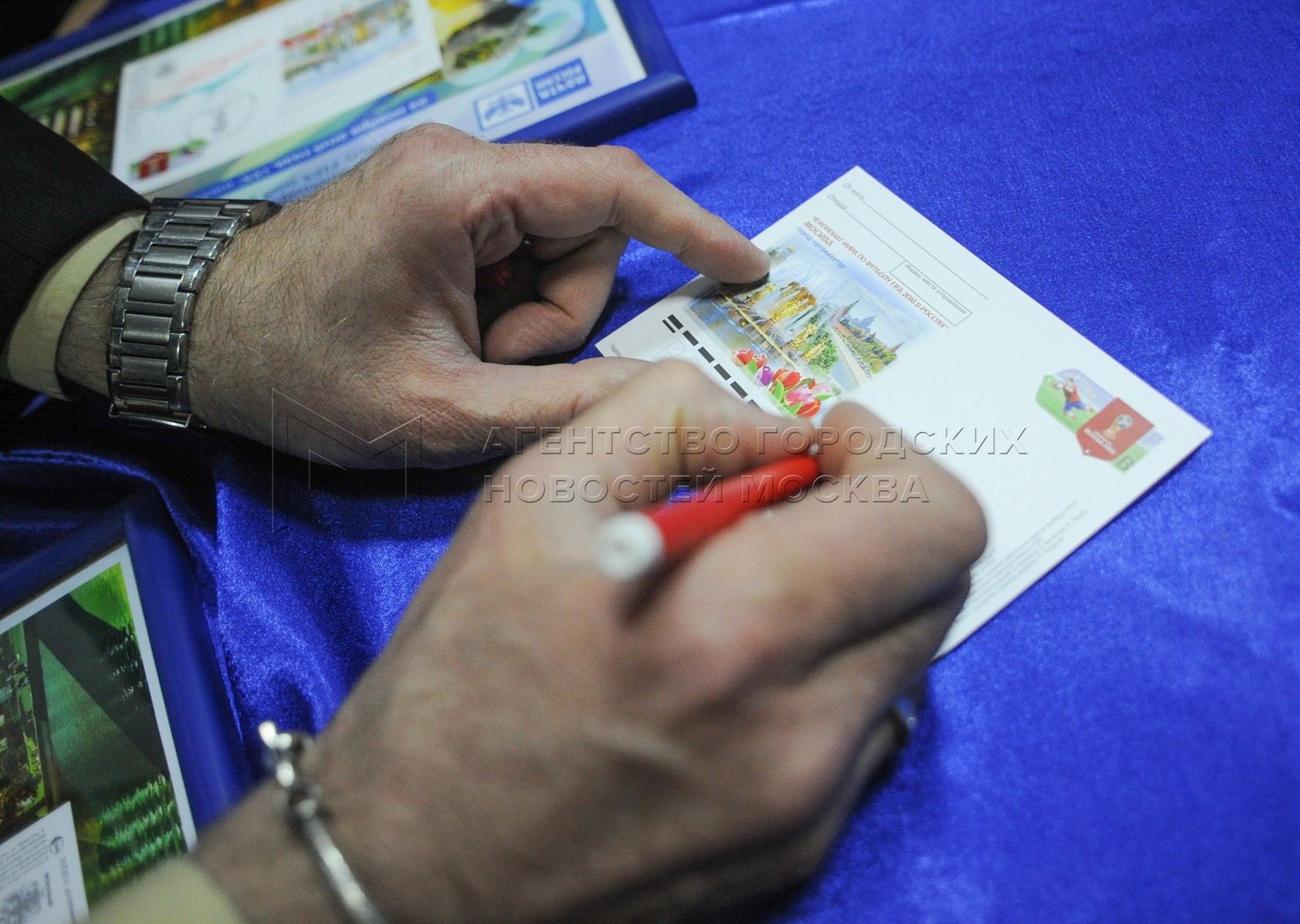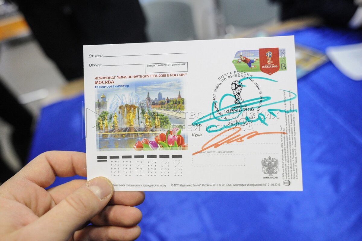 Гашение почтовой карточки, посвященной Москве как городу-организатору Чемпионата ...