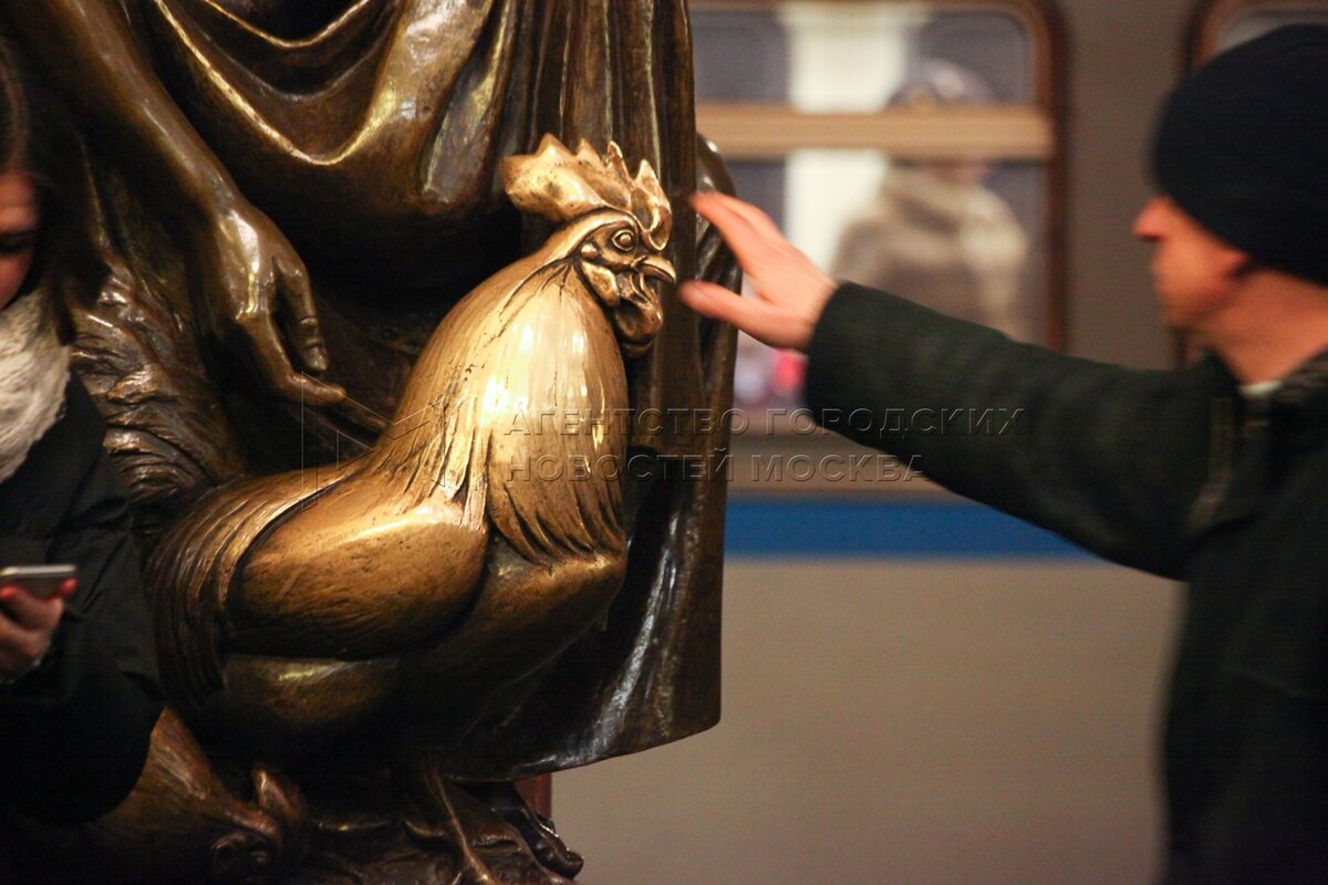 • Заголовок: Приносящая удачу бронзовая скульптура петуха на станции метро «Площадь Революции»
