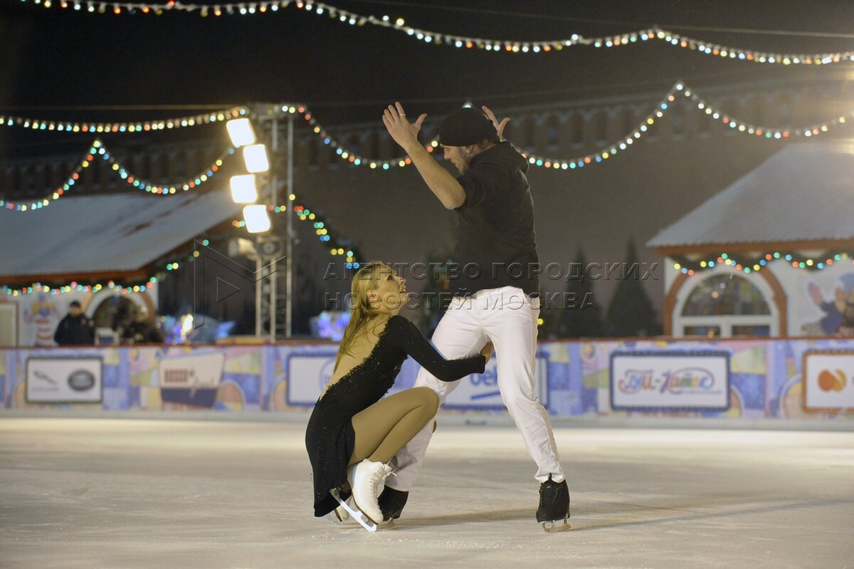 Фигуристы Роман Костомаров и Татьяна Навка во время показательных выступлений фиг...