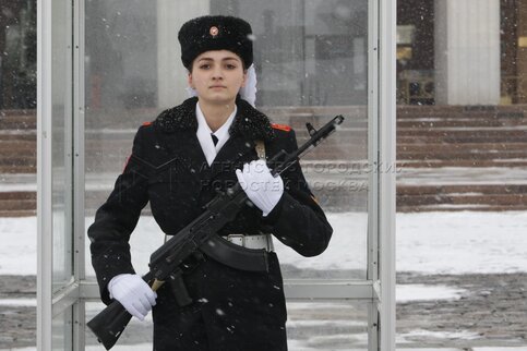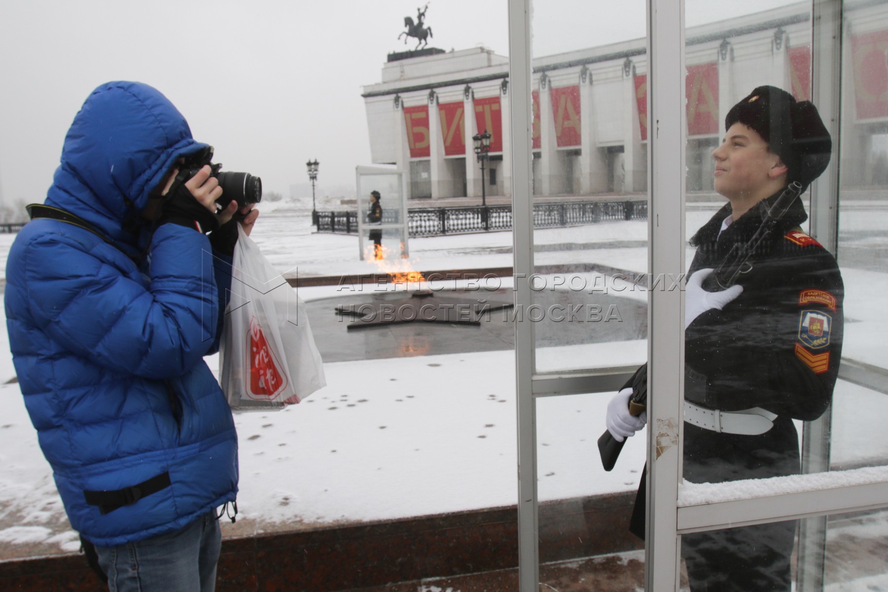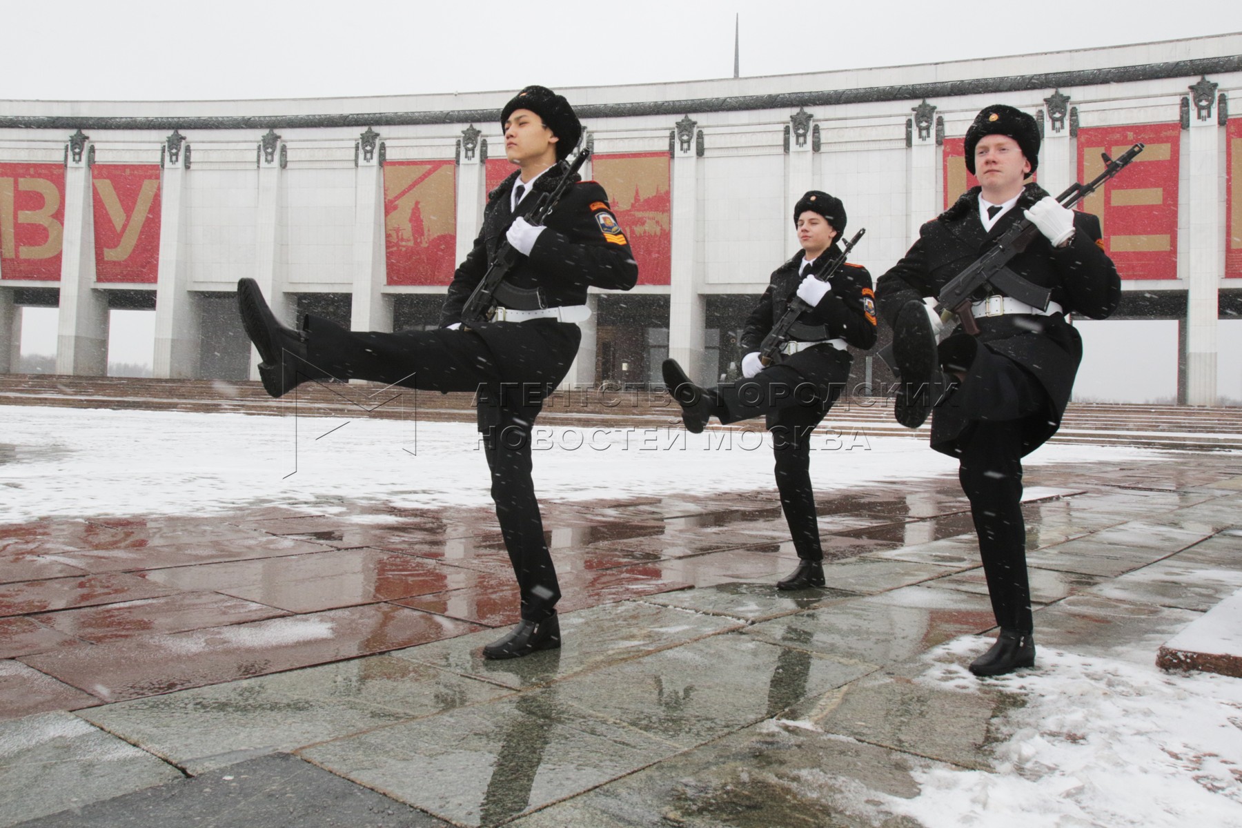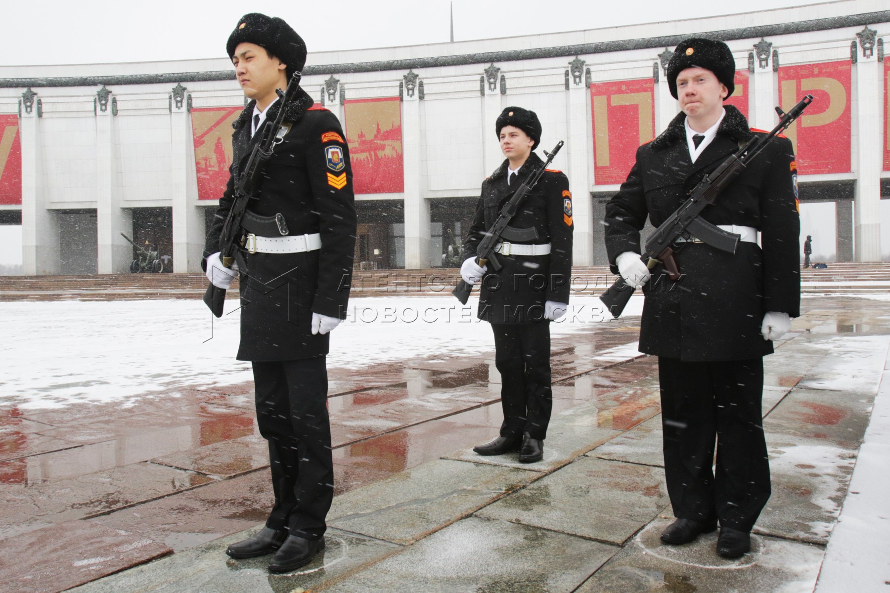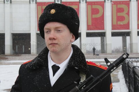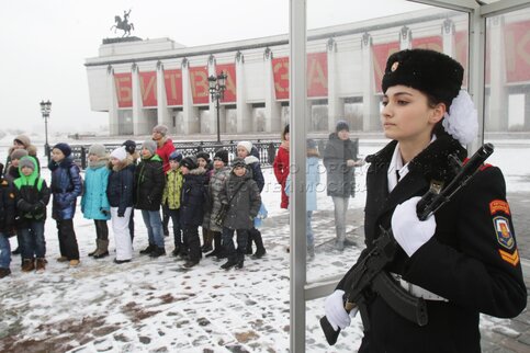 • Описание: Московские школьники в почетном карауле на Поклонной горе в День защитника Отечества.
