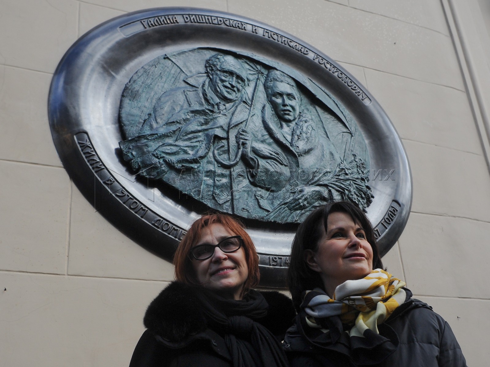 - Описание: Президент фонда М.Ростроповича Ольга Ростропович (справа) и пианистка Елена Ростропович (слева) на церемонии открытия мемориальной доски оперной певице Галине Вишневской и музыканту Мстиславу Ростроповичу на их доме в Газетном переулке.