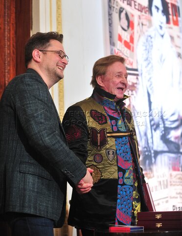 Театральный режиссер Роман Виктюк (справа) на церемонии вручения памятных медалей «За верность традициям Камерного театра».