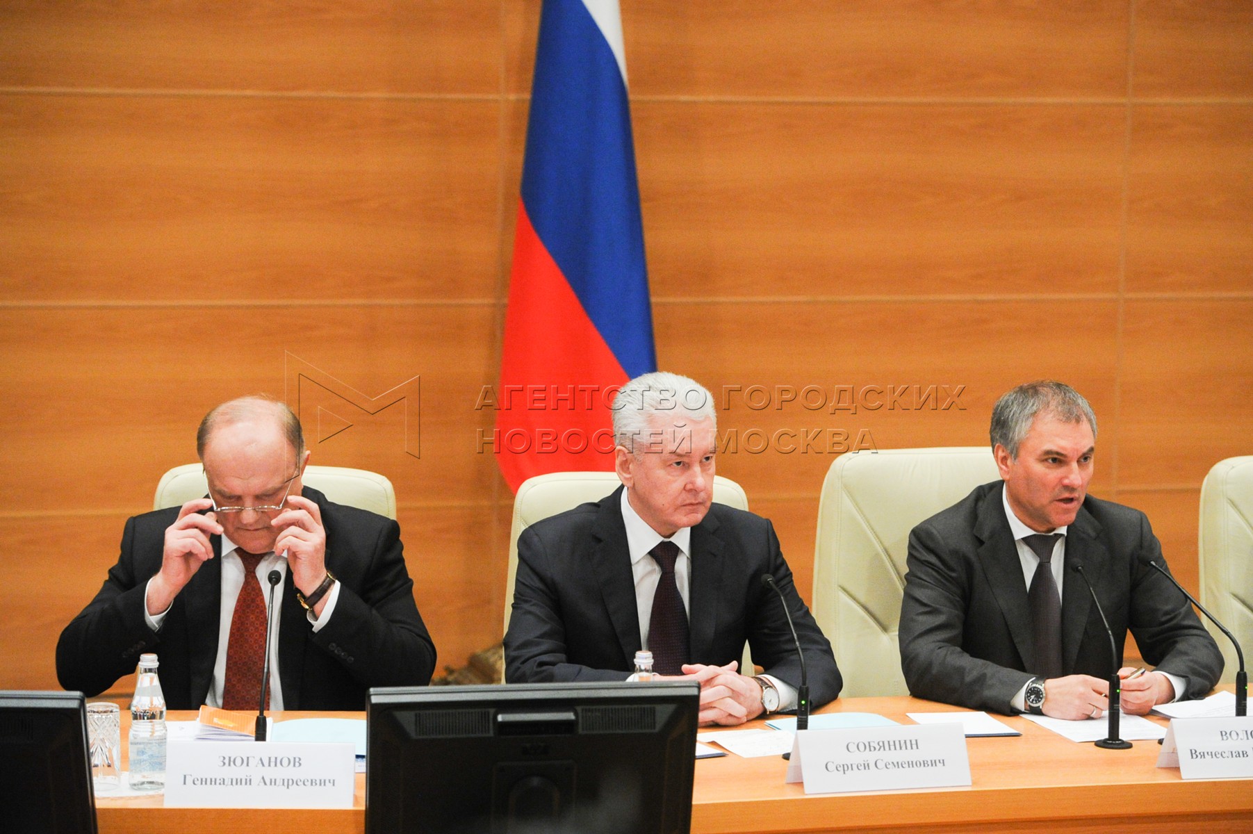 Лидер КПРФ Геннадий Зюганов и мэр Москвы Сергей Собянин (слева направо) на расшир...