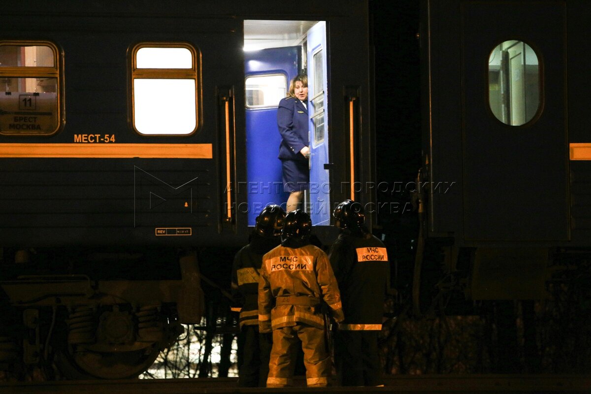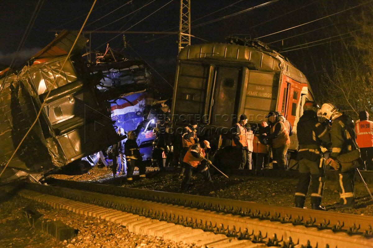 • Заголовок: Работа экстренных служб на месте столкновения пассажирского поезда и электрички на западе Москвы