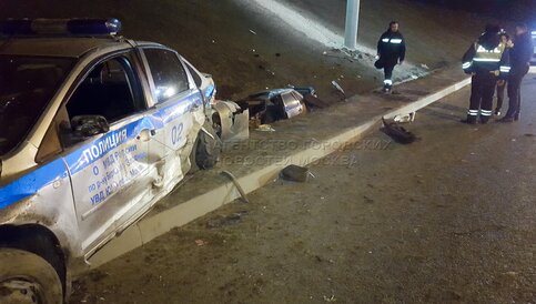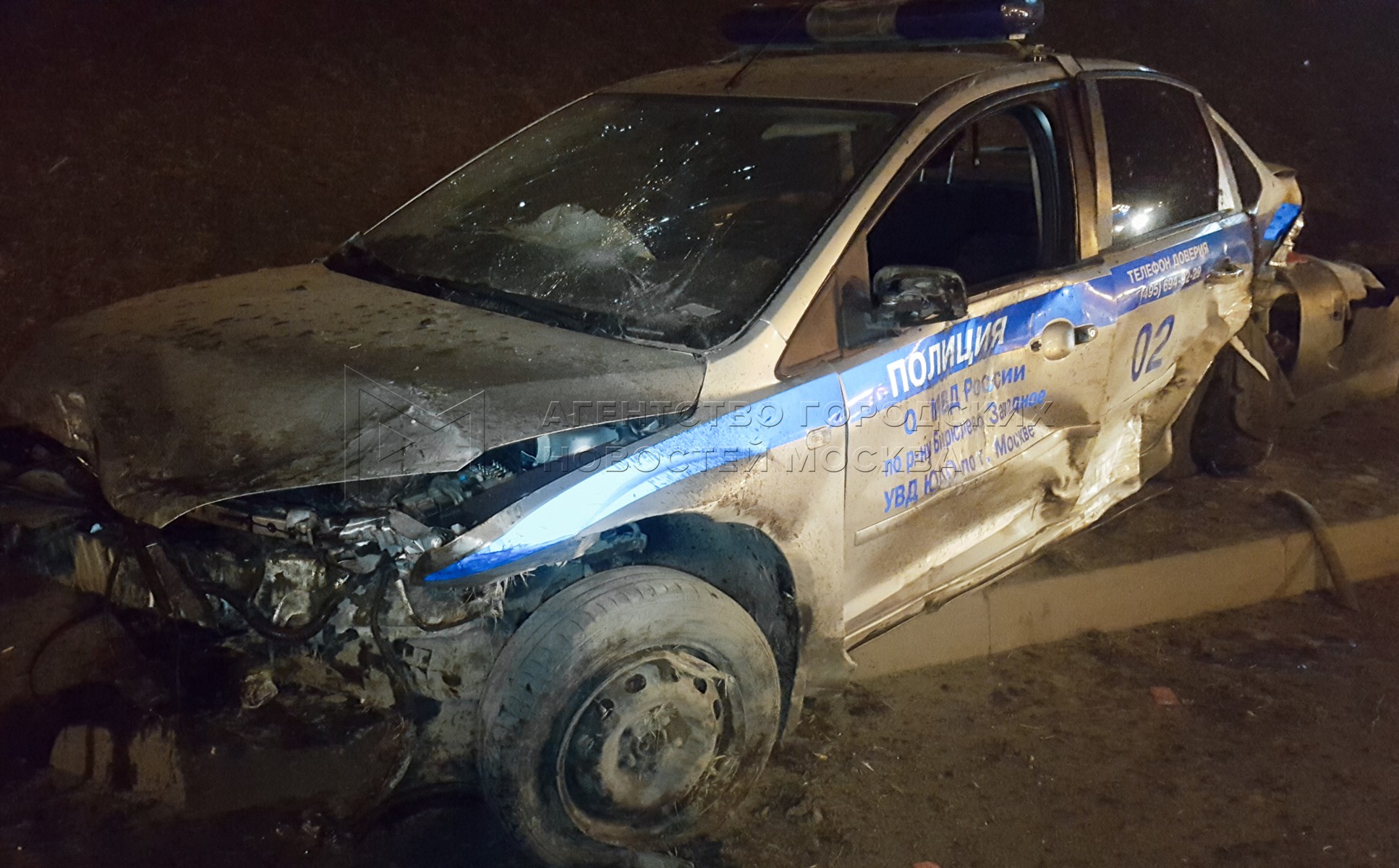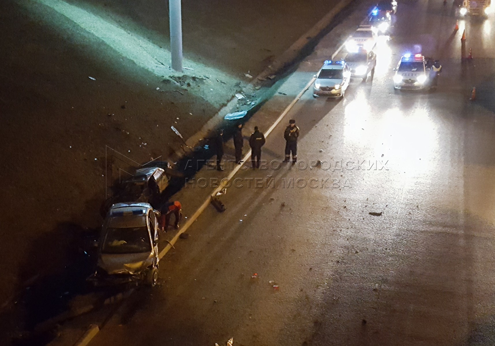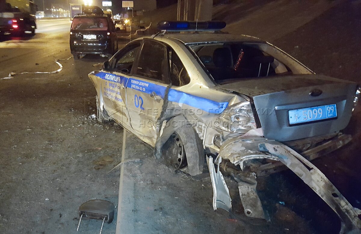 • Описание: Последствия ДТП с участием полицейского автомобиля на 29 км МКАД на юге Москвы.
