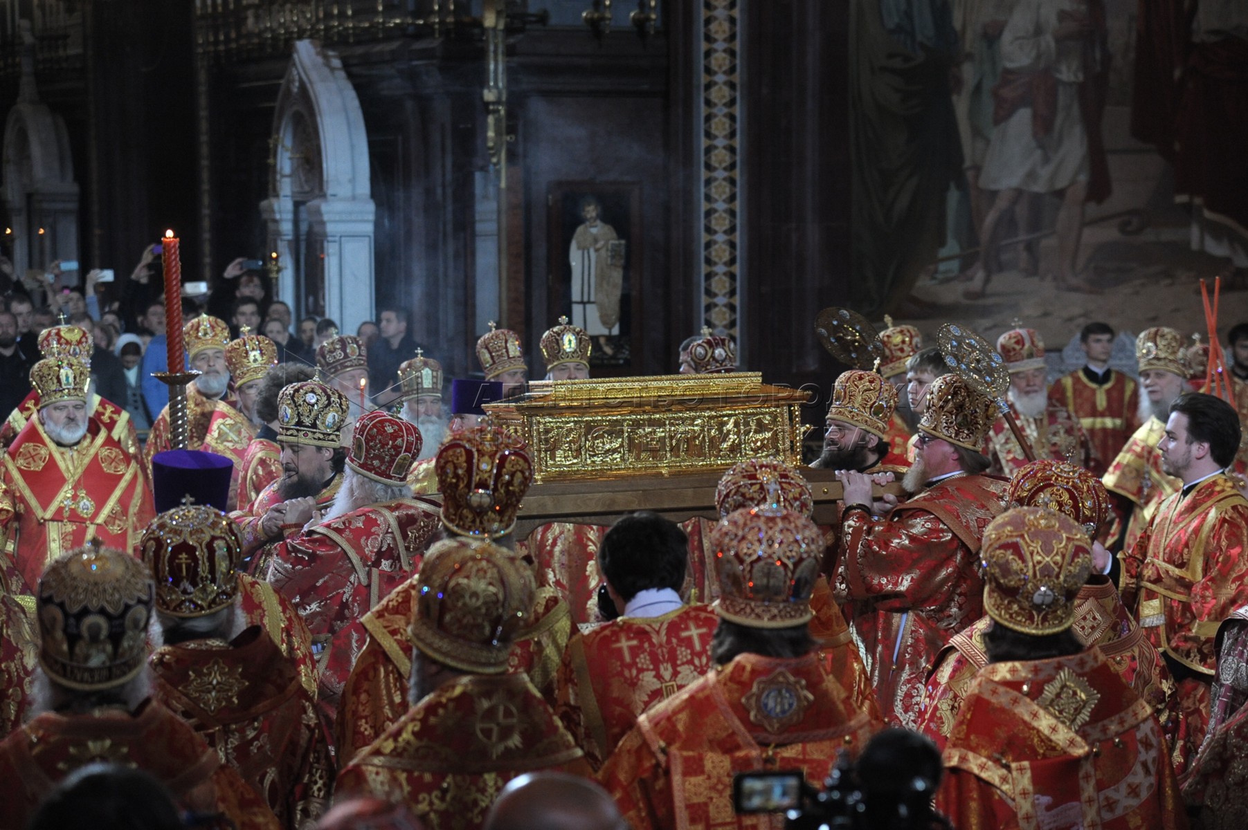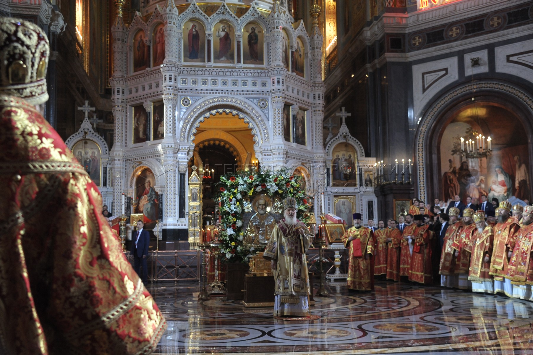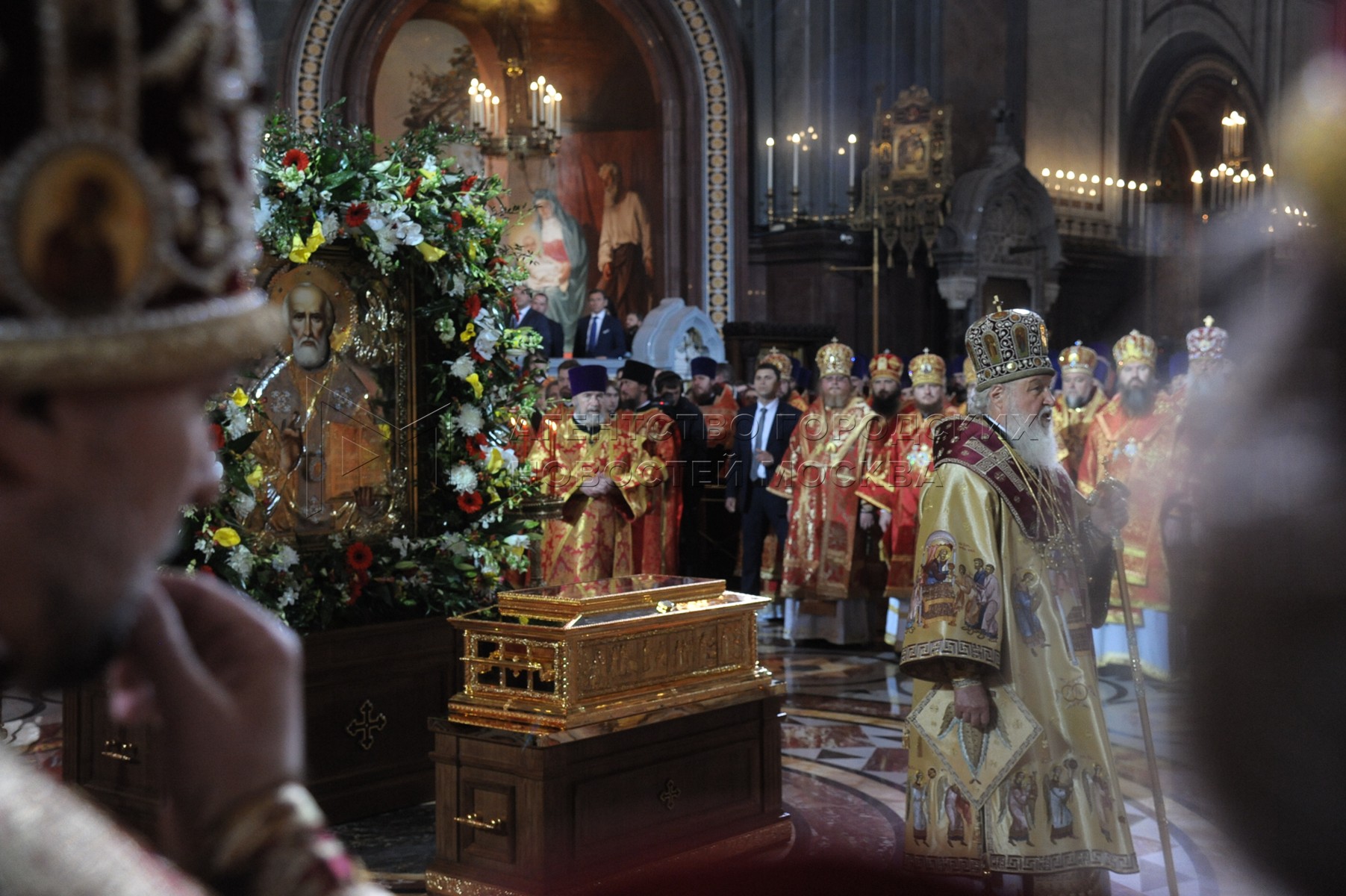 Встреча мощей Николая Чудотворца и патриаршее служение в канун дня его памяти в храме Христа Спасителя.