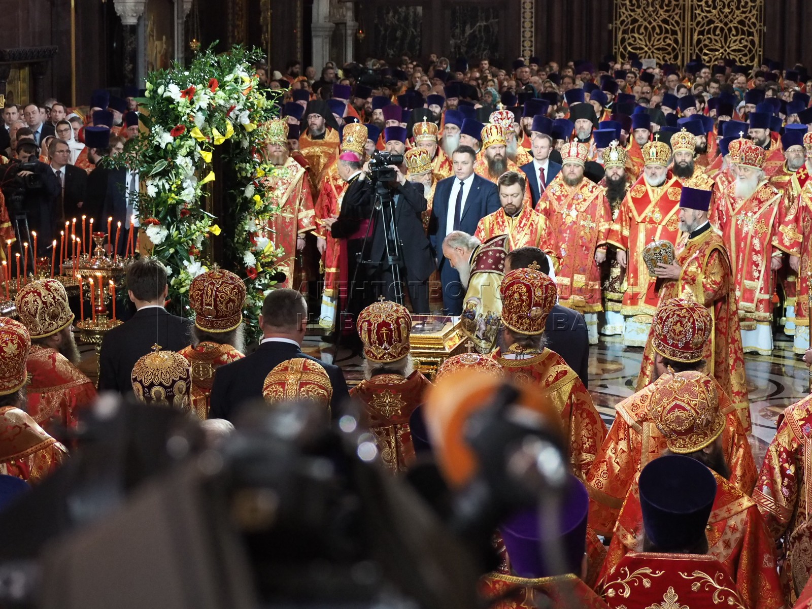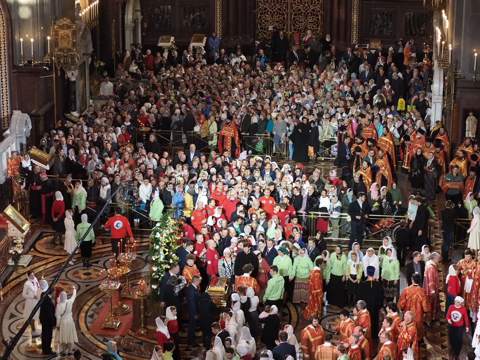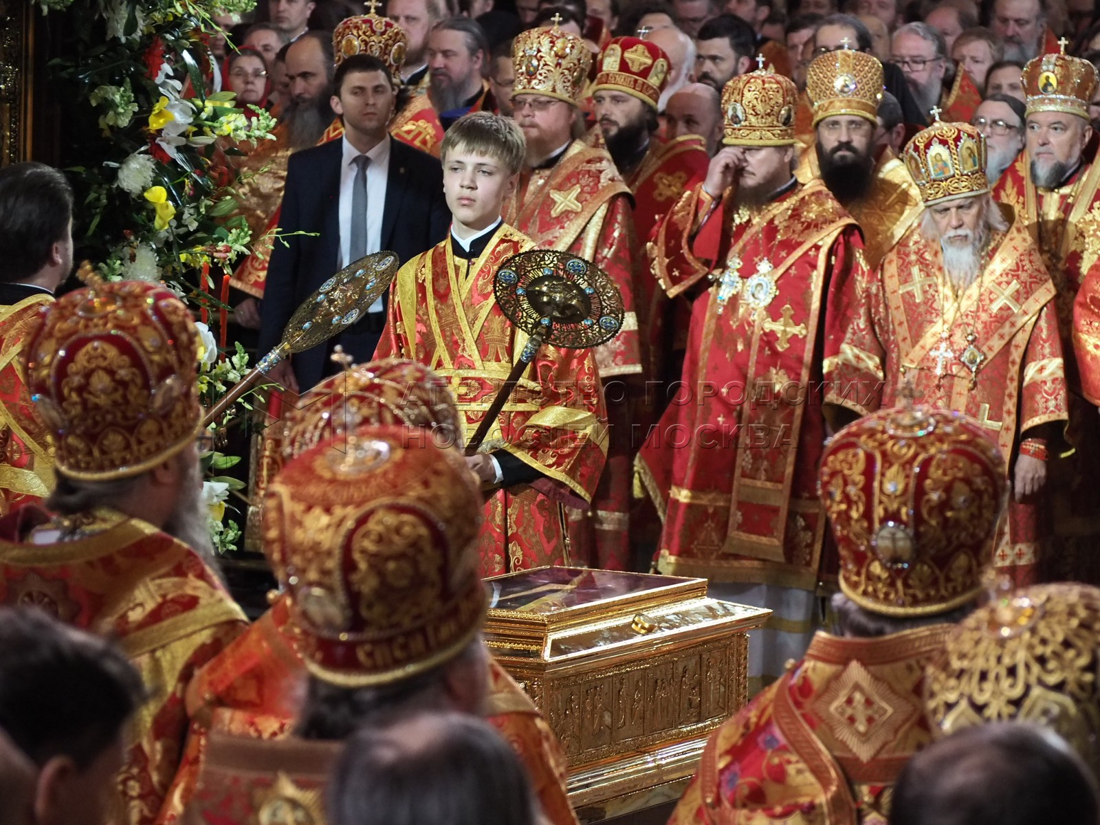 Встреча мощей Николая Чудотворца и патриаршее служение в канун дня его памяти в храме Христа Спасителя.