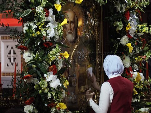 • Заголовок: Встреча мощей Николая Чудотворца и патриаршее служение в канун дня его памяти в храме Христа Спасителя